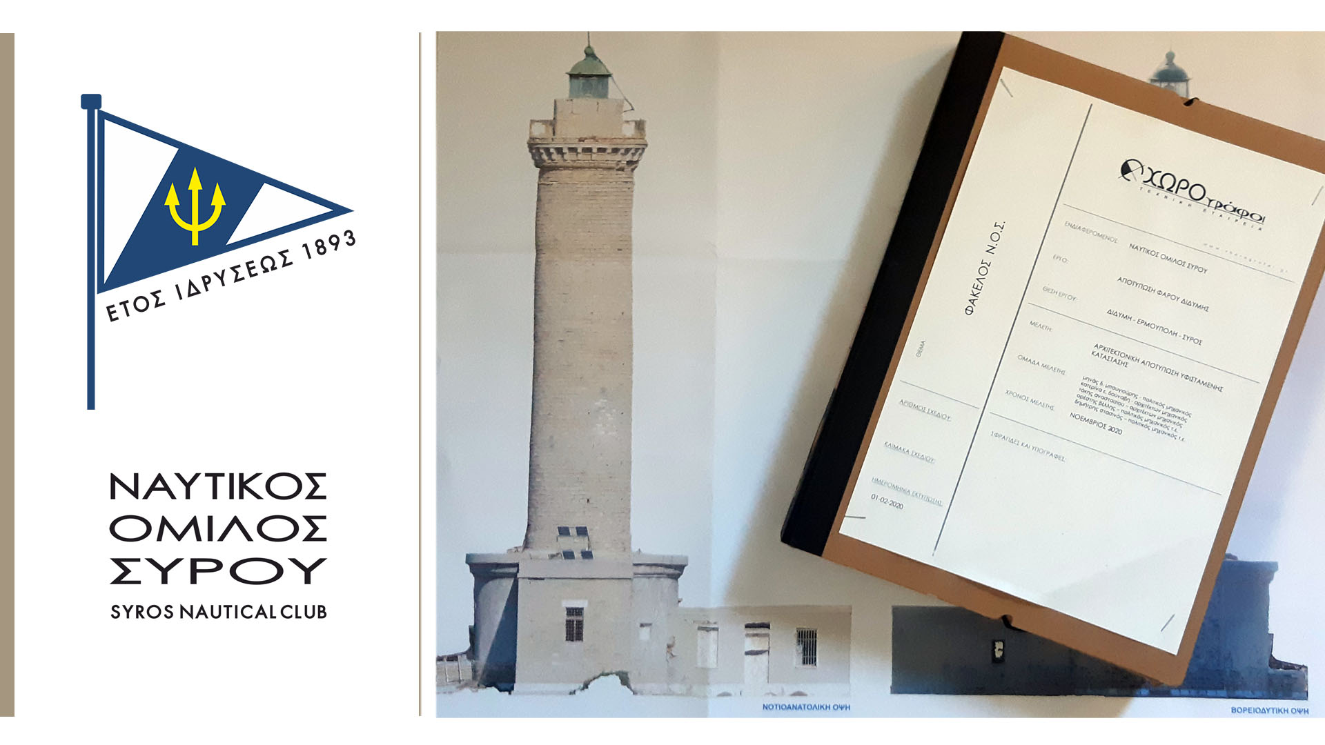 Η διοίκηση του Ναυτικού Ομίλου Σύρου με χαρά ανακοινώνει την παράδοση στον Δήμο Σύρου Ερμούπολης της μελέτης αποκατάστασης του ιστορικού Φάρου που βρίσκεται στη νήσο Διδύμη (Γαϊδουρονήσι), απέναντι από το λιμάνι του νησιού μας.