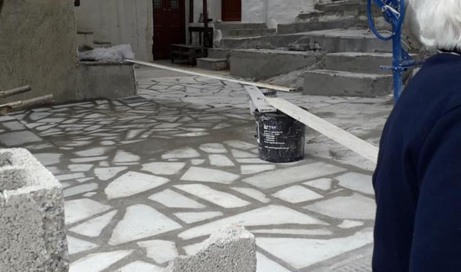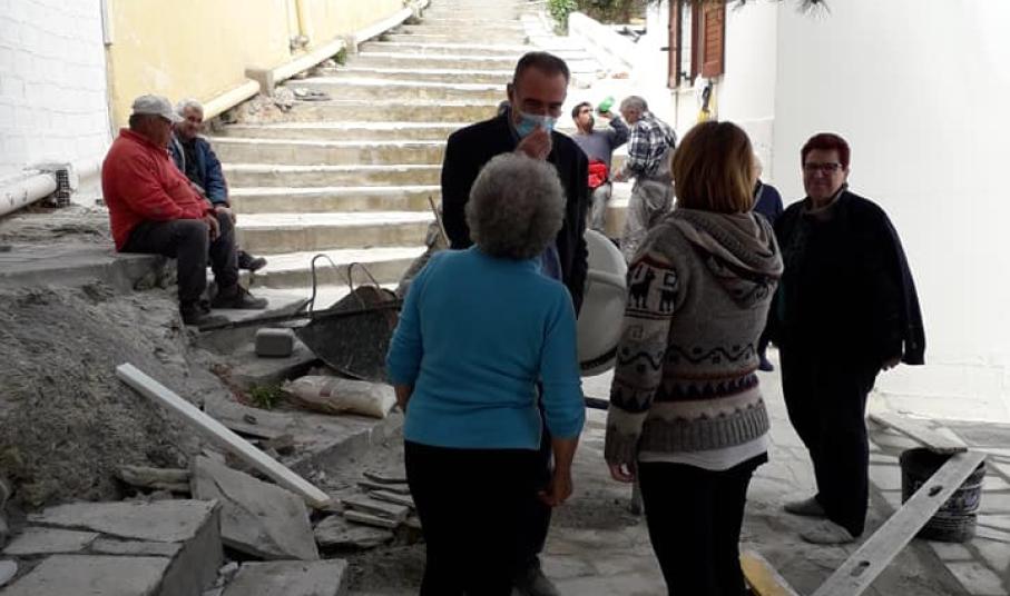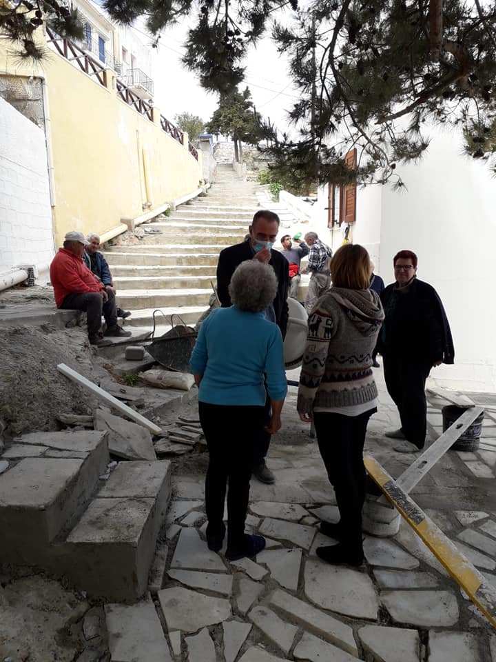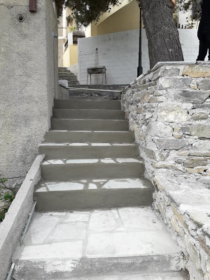 Πλακόστρωση και εργασίες συντήρησης και ανοικοδόμησης τοιχίων και σκαλοπατιών στη γραφική τοποθεσία της Άνω Σύρου