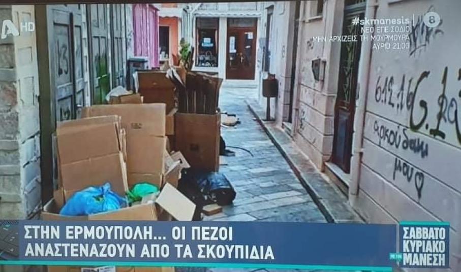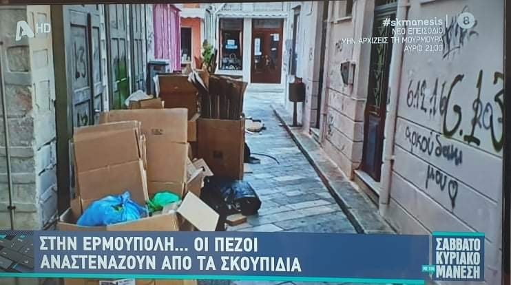 Αφορμή για τη σημερινή συνάντηση με τον Εμπορικό Σύλλογο Σύρου και τον Σύλλογο Εστίασης Σύρου “Τερψιχόρη” αποτέλεσε η πανελλήνια προβολή που έλαβε η κατάσταση της οδού Ανάφης, μέσω σχετικής αναφοράς σε εκπομπή μεγάλου τηλεοπτικού σταθμού της Αθήνας, στο περιεχόμενο της οποίας αποτυπωνόταν ο τεράστιος όγκος χαρτοκιβωτίων σε μικρό πεζόδρομο, που γειτνιάζει με τον κεντρικό πεζόδρομο της Ερμούπολης.