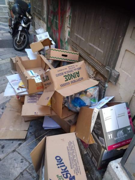 Αν και πρόκειται για ένα πρόβλημα υπαρκτό εδώ και πάρα πολλά χρόνια, καθώς στη συγκεκριμένη οδό που βρίσκονται και τα δημοτικά wc, ανέκαθεν οι επιχειρηματίες άφηναν ανακυκλώσιμα ογκώδη υλικά, ωστόσο, οι εικόνες που παρουσιάστηκαν αναδείκνυαν έναν τεράστιο όγκο χαρτοκιβωτίων που “έπνιγαν” το σημείο.