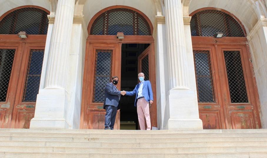 Τον Πρέσβη της Ρουμανίας κ. George Ciampa υποδέχθηκε σήμερα, Παρασκευή 21 Μαΐου 2021, στο Δημαρχιακό Μέγαρο, ο Αντιδήμαρχος Τεχνικών Υπηρεσιών κ. Μηνάς Αληφραγκής, παρουσία του Γενικού Γραμματέα του Δήμου κ. Γεώργιου Καρακατσάνη, στο πλαίσιο προγραμματισμένων συναντήσεων με φορείς του νησιού μας.