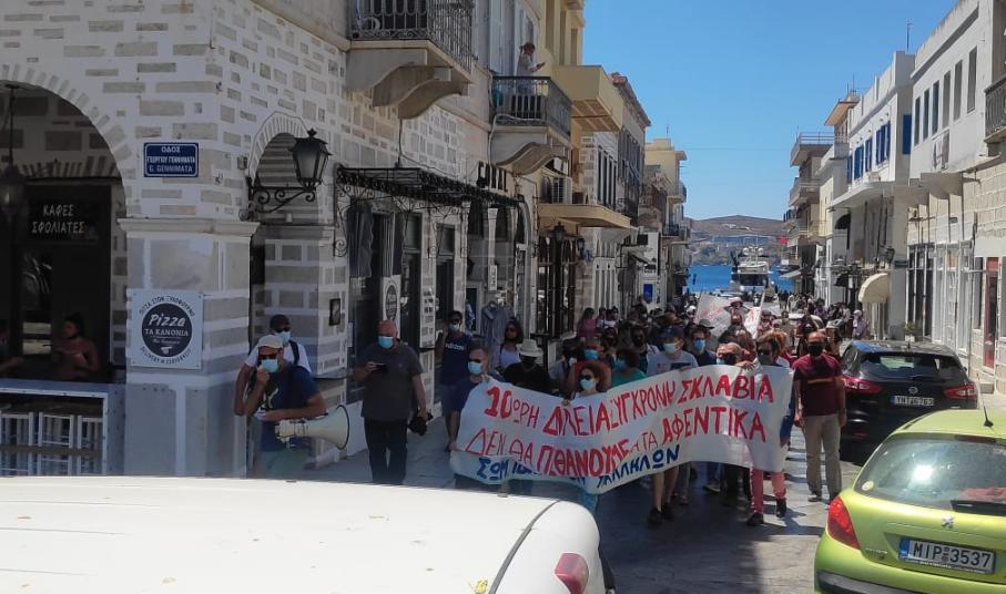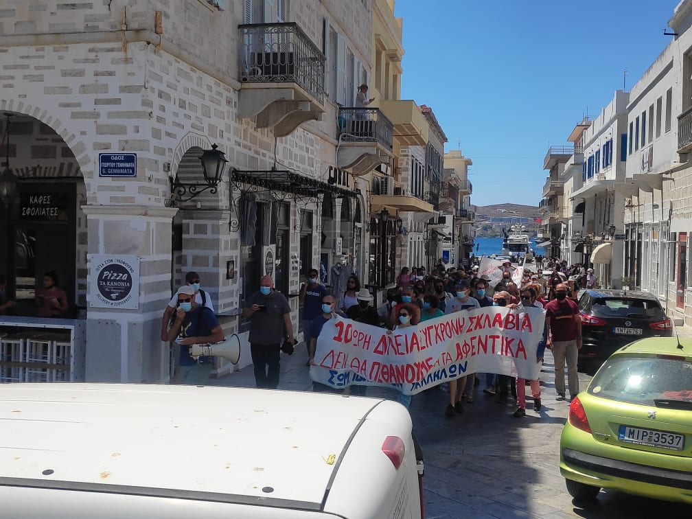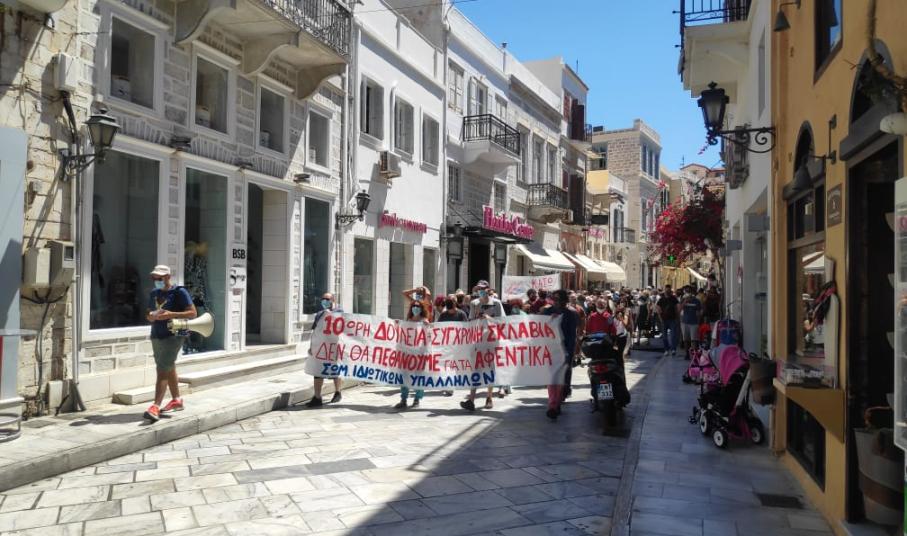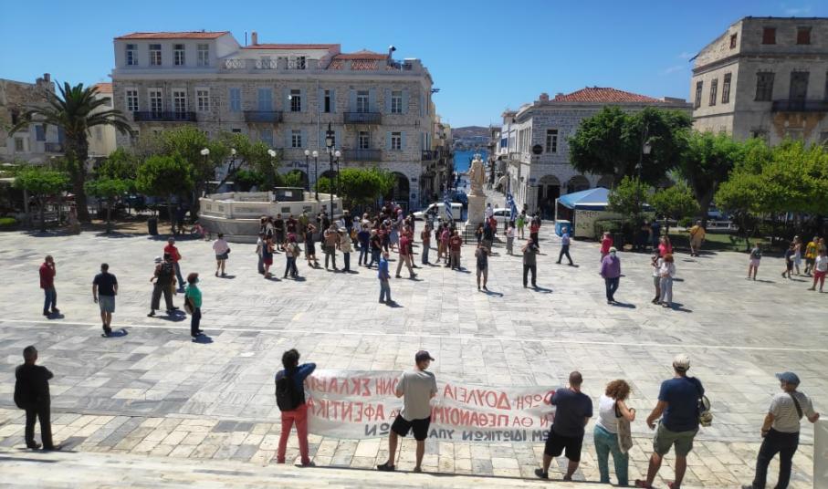 Κινητοποίηση των εργατικών σωματείων και πορεία στο κέντρο της Ερμούπολης