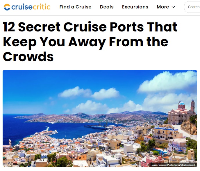 Αποτέλεσε σημαντική εξέλιξη το γεγονός πως η Σύρος “πρωταγωνίστησε” και σε διαφημιστικές αναφορές μεγάλων εταιρειών κρουαζιέρας όπως ενδεικτικά της Windstar Cruises. Σήμερα δε, βλέπουμε ότι η Σύρος προβάλλεται και μέσω της πλατφόρμας αξιολόγησης κρουαζιέρας Cruise Critic. Tί σημαίνει αυτό για την πρωτεύουσα των Κυκλάδων και πώς προέκυψε;