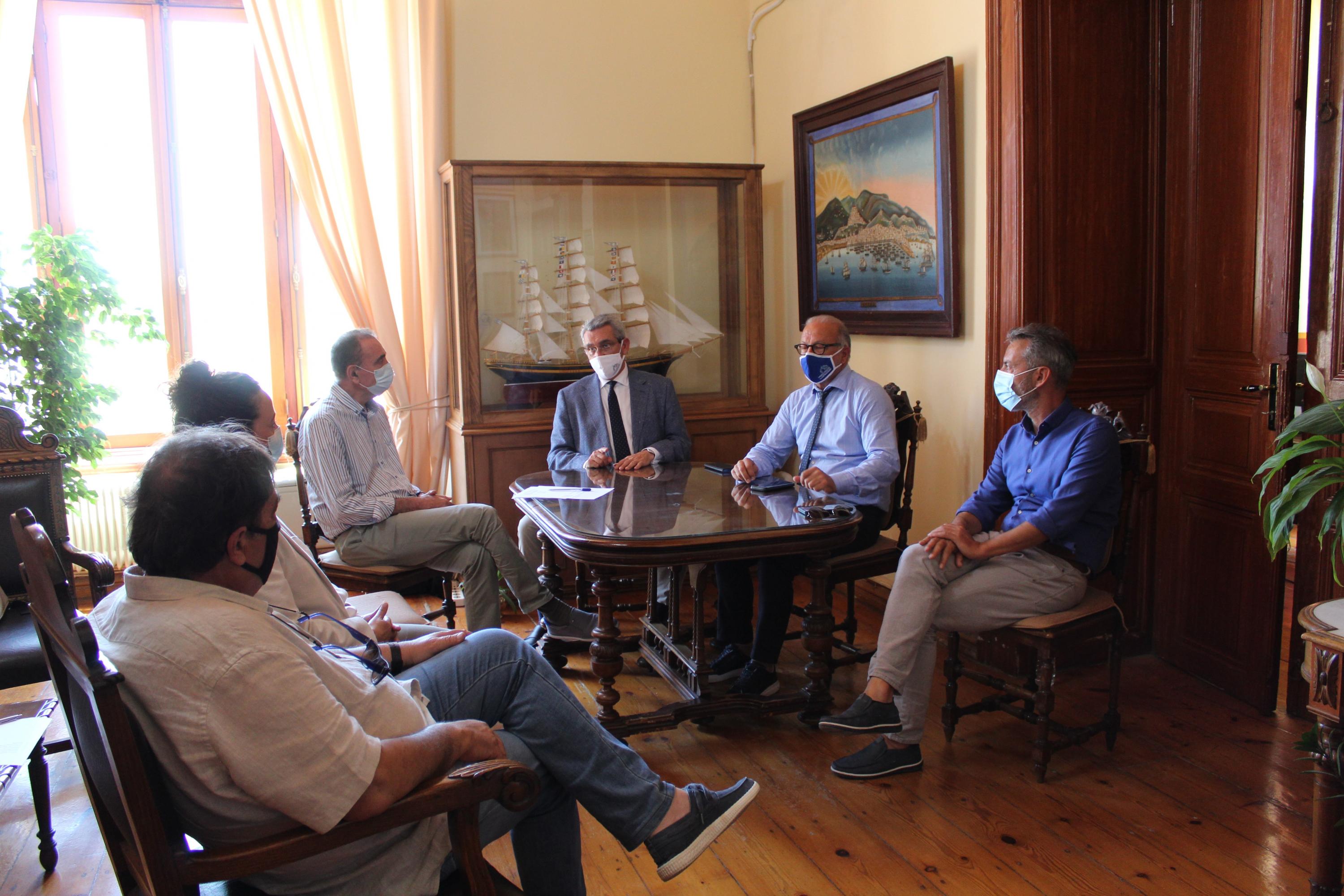 Συνάντηση με τον Περιφερειάρχη Νοτίου Αιγαίου κ. Γεώργιο Χατζημάρκο και τον Αντιπεριφερειάρχη Κυκλάδων κ. Γεώργιο Λεονταρίτη πραγματοποίησε σήμερα, Πέμπτη 08 Ιουλίου 2021, ο Δήμαρχος Σύρου – Ερμούπολης κ. Νικόλαος Λειβαδάρας, παρουσία του Αντιδημάρχου Τεχνικών Υπηρεσιών κ. Μηνά Αληφραγκή, της Προέδρου του Λιμενικού Ταμείου Σύρου κας Κανδιώς Μαραγκού και του Προέδρου της ΔΕΥΑΣ κ. Ανδρέα Γιαλόγλου.