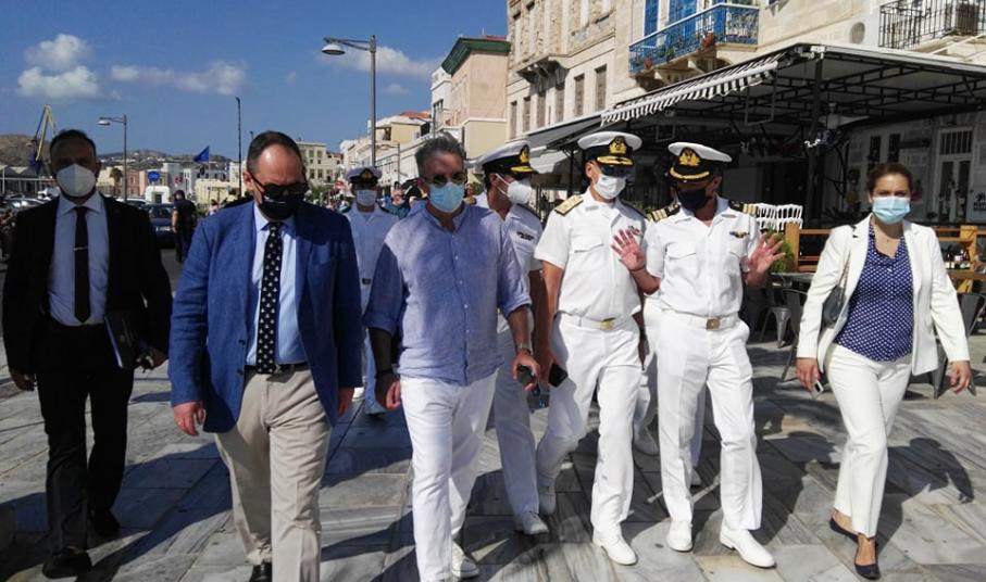 Ο Υπουργός, συνοδεία των στελεχών της Λιμενικής Αρχής, κατευθύνθηκε με τα πόδια προς την Περιφέρεια Νοτίου Αιγαίου, όπου πραγματοποίησε συνάντηση με τον Αντιπεριφερειάρχη Κυκλάδων και τον Δήμαρχο Σύρου - Ερμούπολης.