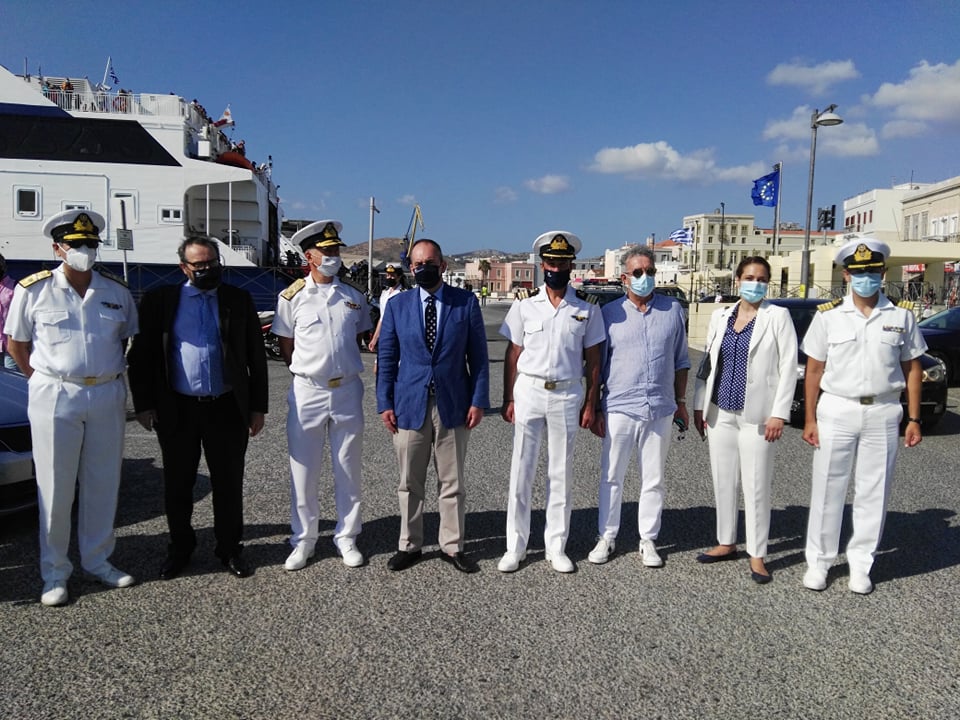 Τον Υπουργό υποδέχτηκαν στο λιμάνι της Ερμούπολης ο Λιμενάρχης Σύρου, κ. Γιάννης Βαμβακούσης, καθώς και στελέχη της Λιμενικής Αρχής. Στο πλαίσιο της επίσκεψής τους στο νησί, στο λιμάνι βρέθηκαν και στελέχη του Υπουργείου Τουρισμού και Υπουργείου Ναυτιλίας, που από χτες βρίσκονται στο νησί. Επιπλέον, παρόντες ήταν ο Διοικητής της 6ης Περιφερειακής Διοίκησης Λιμενικού Σώματος, κ. Ιάκωβος Γκύζης, ο Διοικητής της Ακαδημίας Εμπορικού Ναυτικού (ΑΕΝ) Σύρου, κ. Καραμήτσας, καθώς και ο πρόεδρος του ΕΟΤ Κυκλάδων, κ. Μιχάλης Παράβαλος.