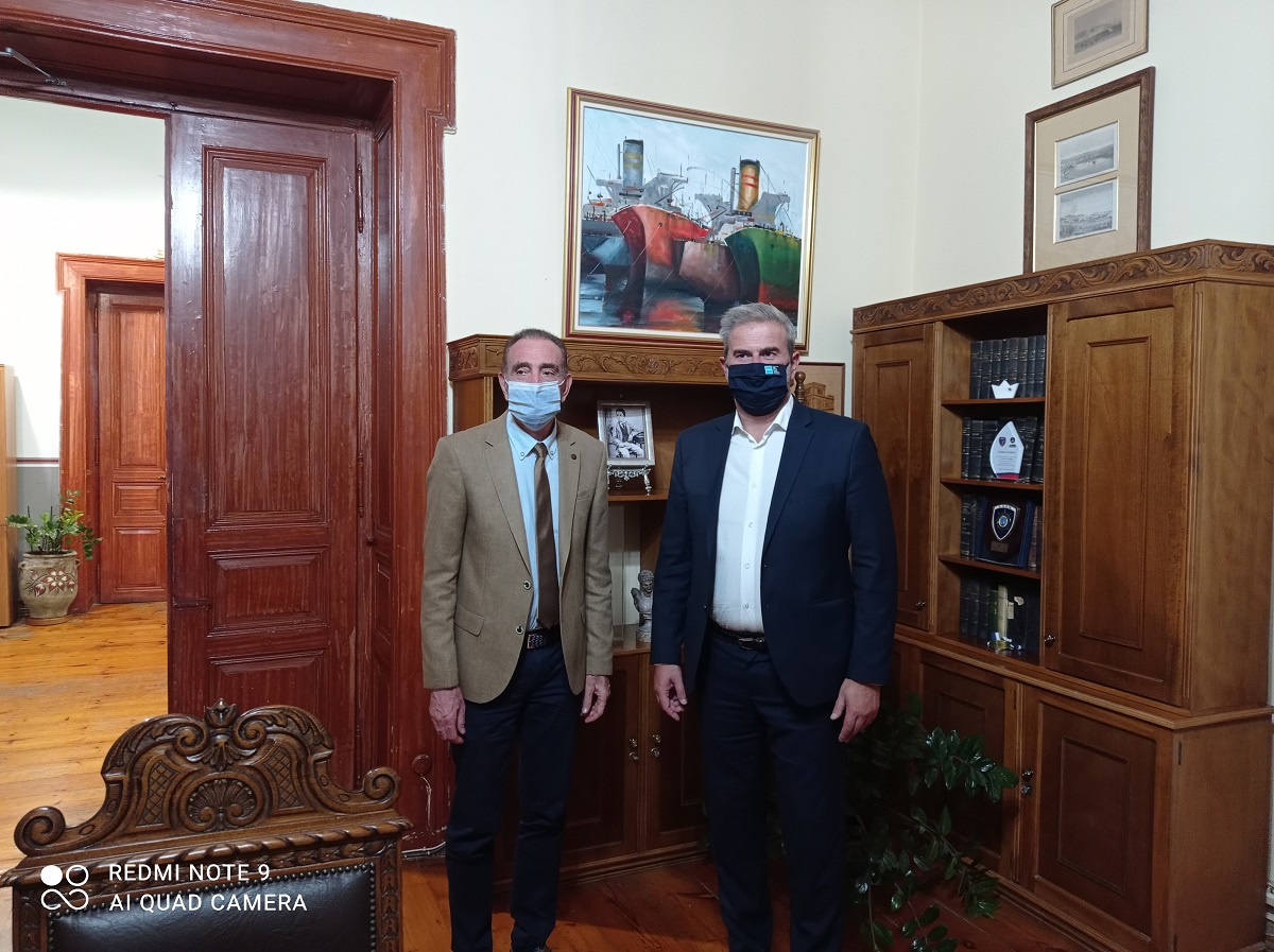 Τον Γενικό Γραμματέα του ΕΟΤ κ. Δημήτρη Φραγκάκη, υποδέχθηκε την Πέμπτη 23 Σεπτεμβρίου 2021, στο Δημαρχιακό Μέγαρο, ο Δήμαρχος Σύρου – Ερμούπολης κ. Νικόλαος Λειβαδάρας, παρουσία του Αντιδημάρχου Τουρισμού κ. Παναγιώτη Κουταβά και του Προϊσταμένου της Περιφερειακής Υπηρεσίας Τουρισμού Κυκλάδων κ. Μιχάλη Παράβαλου, στο πλαίσιο της τουριστικής ανάπτυξης της Σύρου. Για τον ίδιο σκοπό, είχε προηγηθεί γεύμα εργασίας, στο οποίο παρίσταντο και εκπρόσωποι των επιχειρηματιών και συγκεκριμένα ο πρόεδρος του Συλλόγου «Τερψιχόρη» κ. Γιώργος Χατζαντώνης, ο πρόεδρος της Ένωσης Τουριστικών Καταλυμάτων κ. Αντώνης Καρατάσος και τα μέλη της ομάδας «Syros Experience» κ.κ. Γιώργος Βαρθαλίτης και Αντώνης Βουτσίνος.