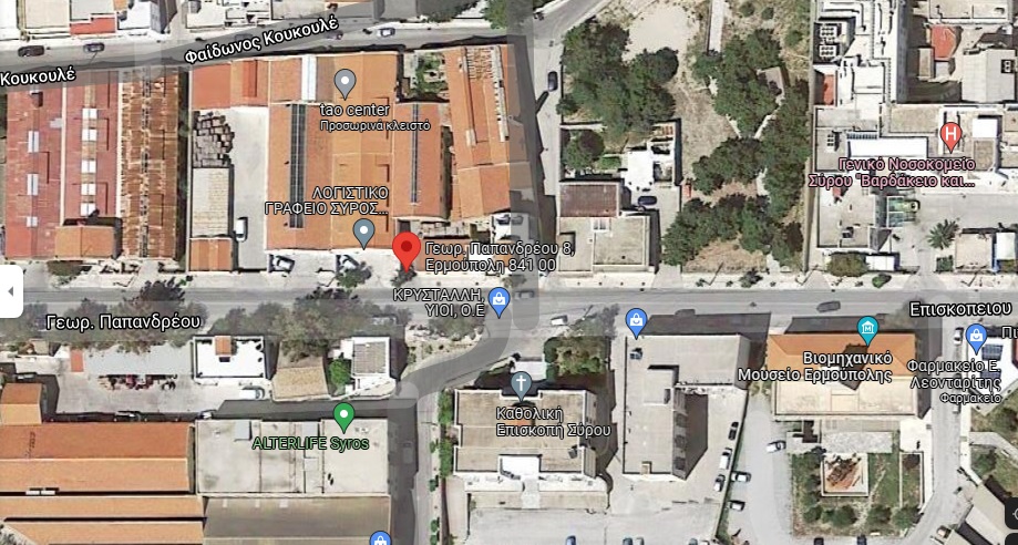 : Εκτάκτως και σε ακίνητο 300 τ.μ. επί της οδού Γεωργίου Παπανδρέου στην Ερμούπολη προκειμένου να διαφυλαχθεί μέχρι την ψηφιοποίησή του και να έχουν πρόσβαση οι μηχανικοί και οι αρμόδιοι δημοτικοί υπάλληλοι