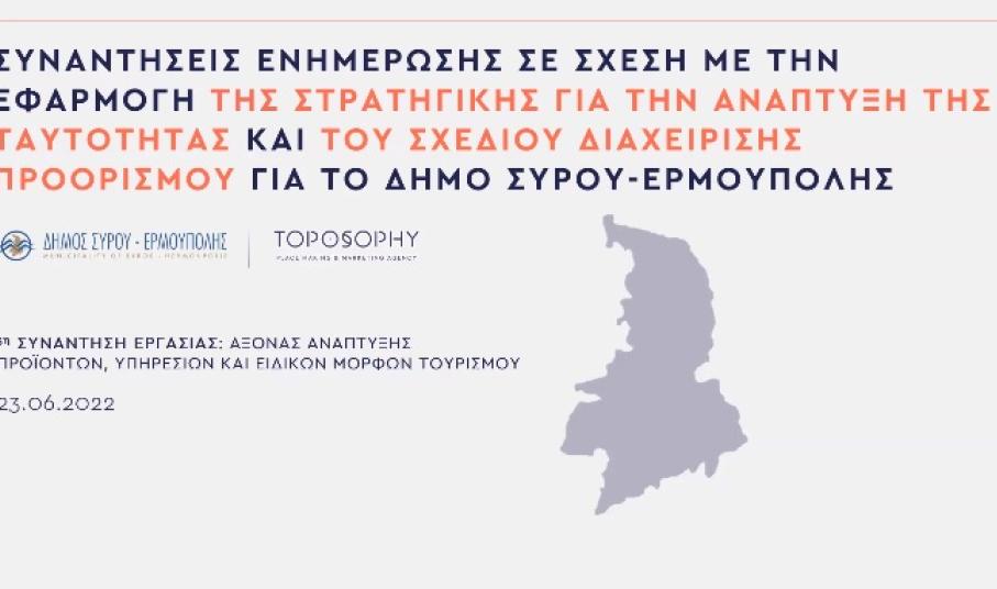 Οριστικοποιήθηκε το σχέδιο της τουριστικής ανάπτυξης της Σύρου και βασικά σημεία του παρουσιάστηκαν χθες, στο πλαίσιο ειδικής ενημερωτικής εκδήλωσης του Δήμου Σύρου – Ερμούπολης, με βασικούς ομιλητές τα στελέχη της Toposophy.