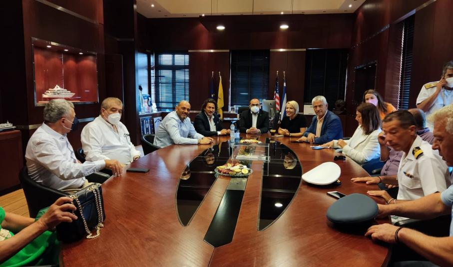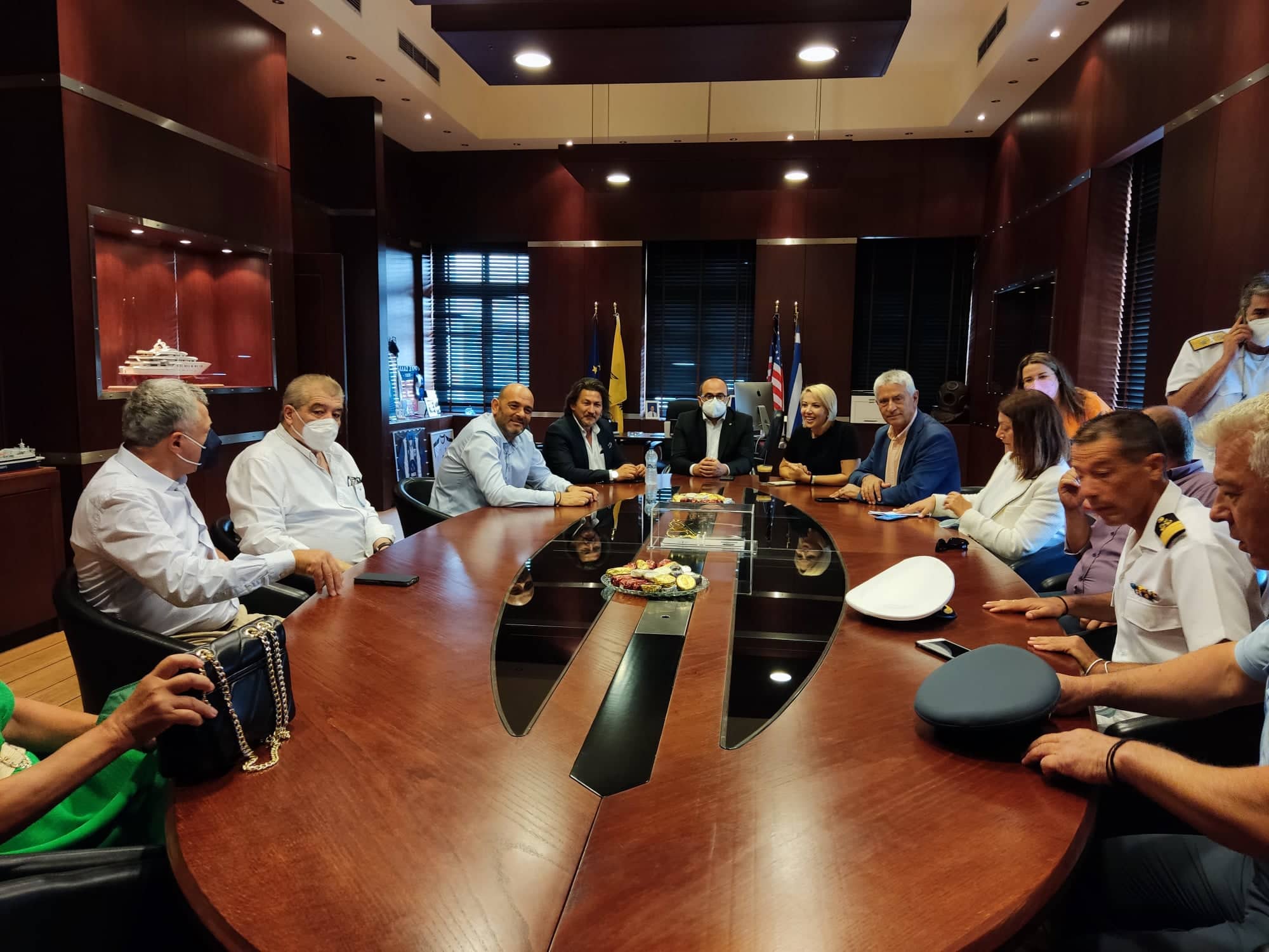 Σημειώνεται πως στις περισσότερες συναντήσεις συμμετείχε και ο Περιφερειακός Αστυνομικός Διευθυντής του Ν. Αιγαίου, Γιώργος Μιχαλόπουλος, ο οποίος έδωσε το “παρών” στο Λιμεναρχείο και στο Νεώριο.