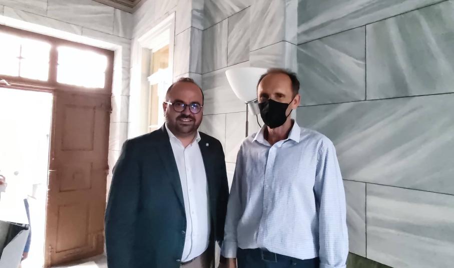 Ο Γενικός Γραμματέας πραγματοποίησε επαφές και με τον Δήμαρχο Σύρου – Ερμούπολης, Νίκο Λειβαδάρα καθώς και με τον Αντιπεριφερειάρχη Κυκλάδων, Γιώργο Λεονταρίτη. Προς αυτόν τέθηκαν τα θέματα και των καθυστερήσεων στην καταβολή του Μεταφορικού Ισοδύναμου, καθώς και το κόστος των ακτοπλοϊκών μετακινήσεων που έχει γίνει δυσβάσταχτο για τους νησιώτες.