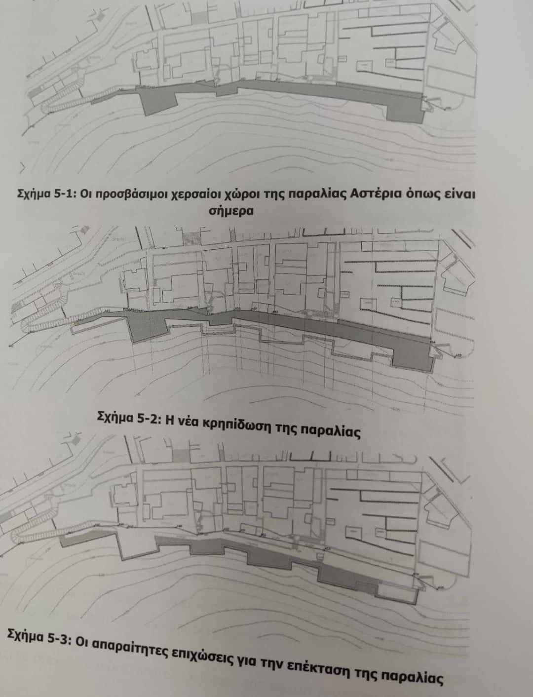 Η σκοπιμότητα της ανάπλασης προκύπτει “τόσο από την αυξημένη ζήτηση για χώρους στην παραλία Αστέρια κατά το χρονικό διάστημα της τουριστικής περιόδου του οικισμού, όσο και από την αναγνωρισμένη αναγκαιότητα για την αισθητική αναβάθμισή της. Η αύξηση της επιφάνειας των χερσαίων χώρων είναι αναγκαία και η επέκταση προς τη θάλασσα αναπόφευκτη”.