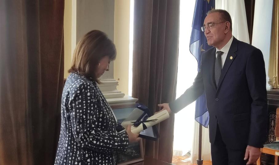Συμπληρώνοντας μάλιστα πως η ίδια αποφοίτησε από το Αρσάκειο ενώ είναι πτυχιούχος της Νομικής Σχολής του Πανεπιστημίου Αθηνών, υπογράμμισε πως, “Ανήλθατε στα ανώτατα Δικαστικά αξιώματα με παράλληλη ακαδημαϊκή καριέρα και πλούσιο ακαδημαϊκό έργο με θέματα κυρίως περιβαλλοντικού και χωροταξικού δικαίου, ισότητας των φύλων, προστασίας των ατομικών δικαιωμάτων και κατοχύρωσης του κράτους δικαίου”. Αυτή η λαμπρή και δημιουργική πορεία της ίδιας, τόνισε ο Δήμαρχος προς εκείνη πως, “σας οδήγησε επάξια τον Ιανουάριο του 2020, στο υπέρτατο πολιτειακό αξίωμα της Προέδρου της Ελληνικής Δημοκρατίας και μάλιστα ως της πρώτης γυναίκας στην ιστορία της χώρας μας”.