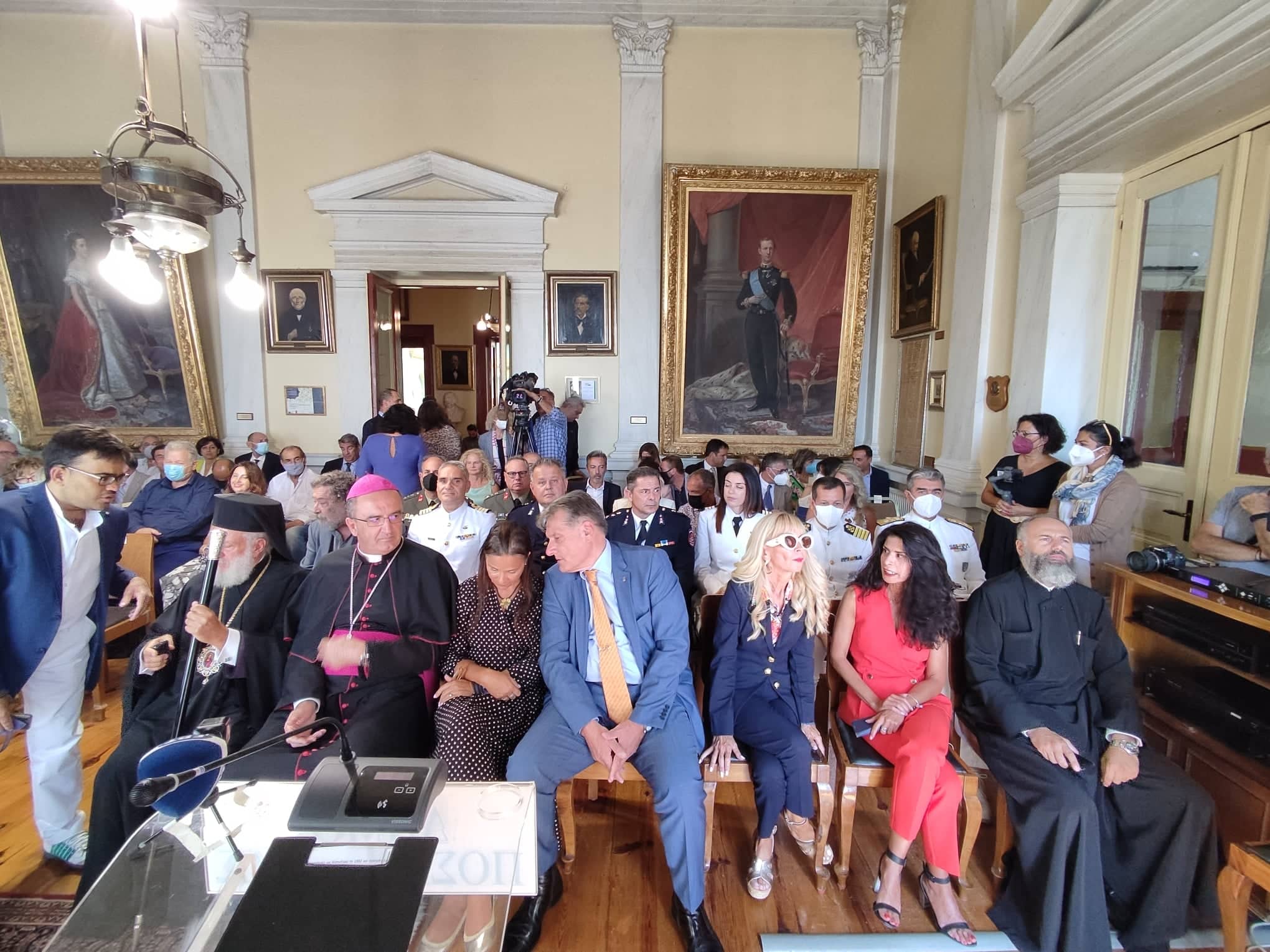 Χθες, το μεσημέρι, στο Δημαρχιακό Μέγαρο πραγματοποιήθηκε μία ιδιαιτέρως λιτή τελετή για την αναγόρευσή της σε επίτιμη δημότη, με τον Δήμαρχο Σύρου – Ερμούπολης, Νίκο Λειβαδάρα να υποδέχεται την ίδια στο ιστορικό κτίριο της πόλης, παρουσία του Σεβασμιωτάτου Μητροπολίτη Σύρου, κ. Δωροθέου Β΄, του Καθολικού Επισκόπου Σύρου, Σεβ. π. Πέτρου Στεφάνου, εκπροσώπων της κυβέρνησης όπως του Γιάννη Βρούτση, αλλά και εκπροσώπων του Δικαστικού Σώματος, των Σωμάτων Ασφαλείας, του Πανεπιστημίου Αιγαίου, της Περιφέρειας Ν. Αιγαίου και του Δήμου Σύρου – Ερμούπολης.