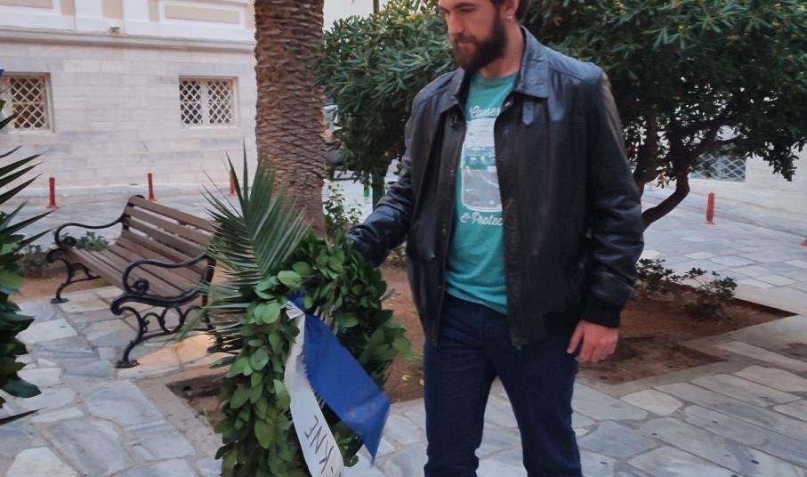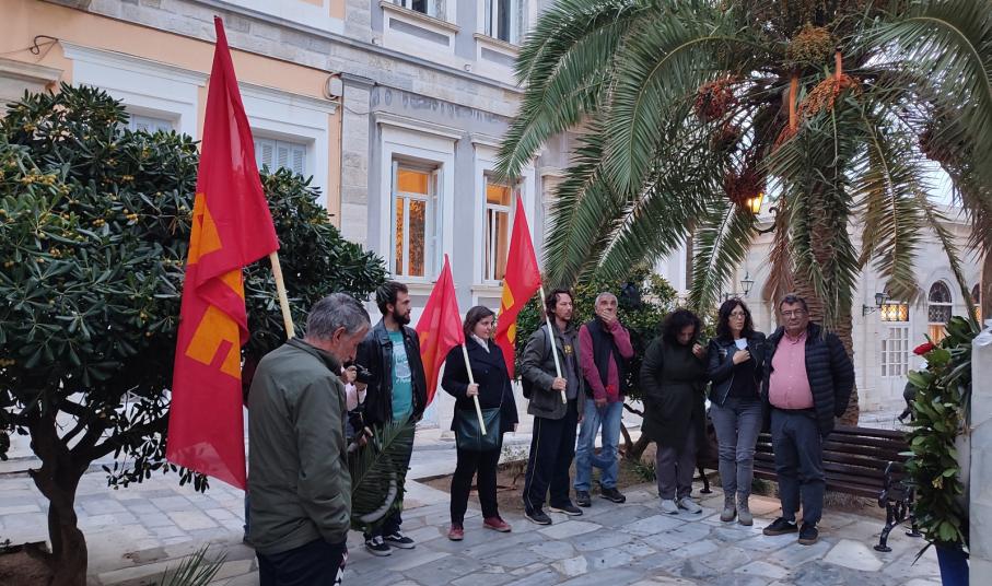 Κατάθεση στεφάνου της ΚΟΒ Σύρου του ΚΚΕ για την επέτειο του Πολυτεχνείου
