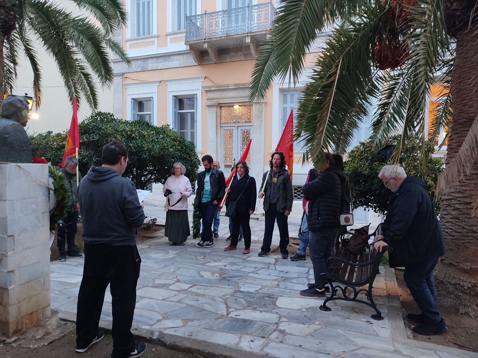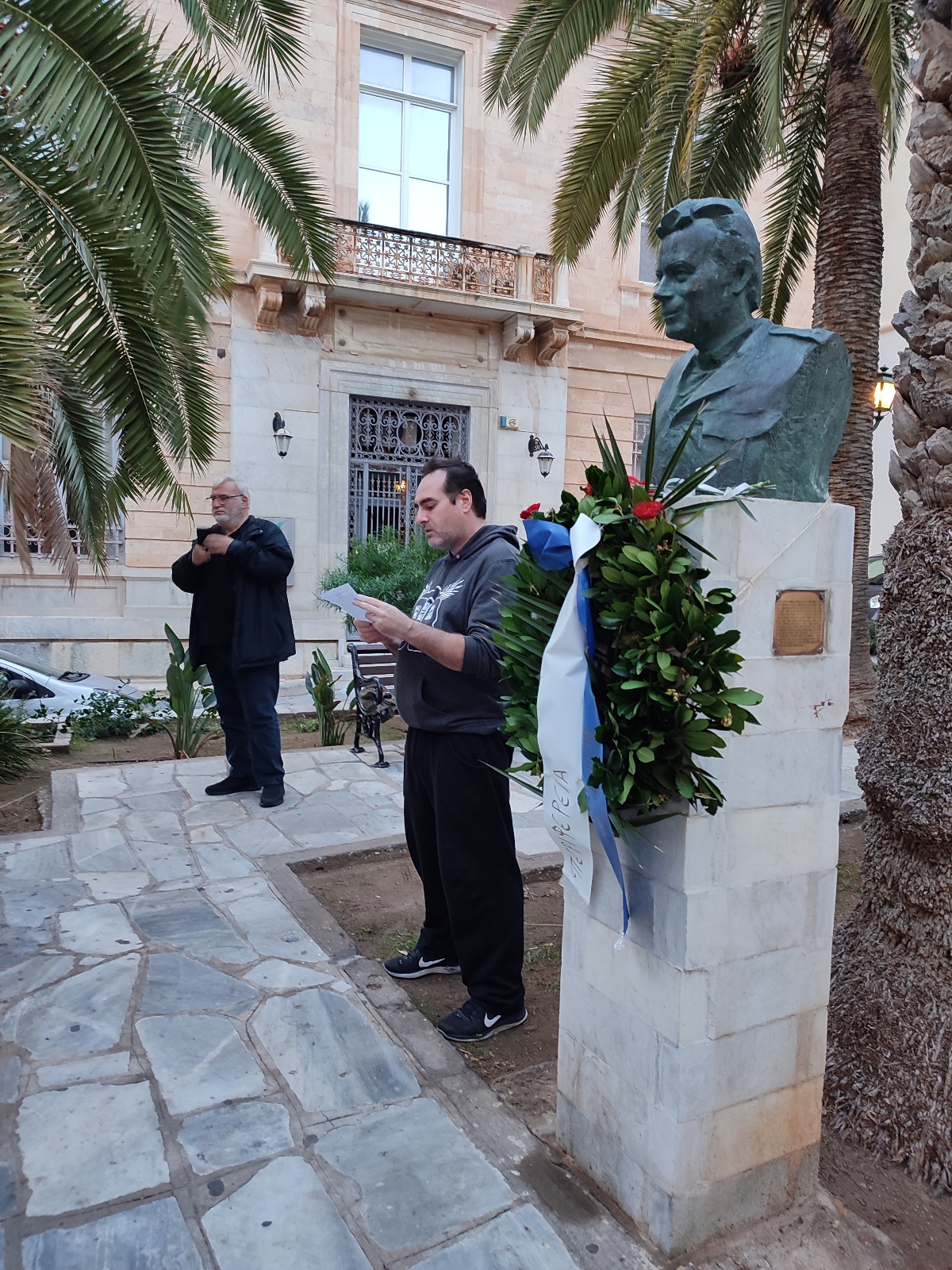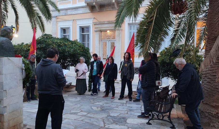 Κατάθεση στεφάνου πραγματοποίησε στην προτομή του αντιστράτηγου Σπύρου Μουστακλή η Κομματική Οργάνωση Βάσης Σύρου του ΚΚΕ, τιμώντας την 49η επέτειο από τον ηρωικό ξεσηκωμό του Πολυτεχνείου.
