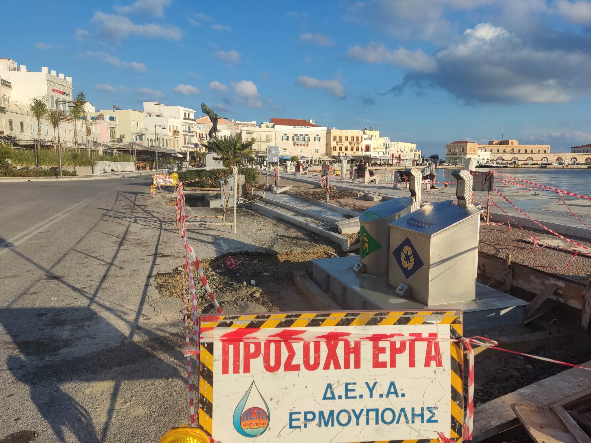 Χωρίς να γίνεται καμία αναφορά εκ μέρους τους σχετικά με την αναγκαιότητα τήρησης των προβλεπομένων του κανονισμού καθαριότητας και κυρίως σε ένα σημείο από το οποίο βρίσκεται σε απόσταση αναπνοής η κεντρική κυκλοφοριακή ροή της Ερμούπολης, ο ποδηλατόδρομος, το μνημείο της Εθνικής Αντίστασης, η στάση των mini bus και το τμήμα του παραλιακού μετώπου στο οποίο καταπλέουν καθημερινά σκάφη και κότερα τη θερινή περίοδο, μέλη της Δημοτικής Αρχής υπεραμύνθηκαν της επιλογής του συγκεκριμένου χώρου για την εγκατάσταση των βυθιζόμενων κάδων ανακύκλωσης.