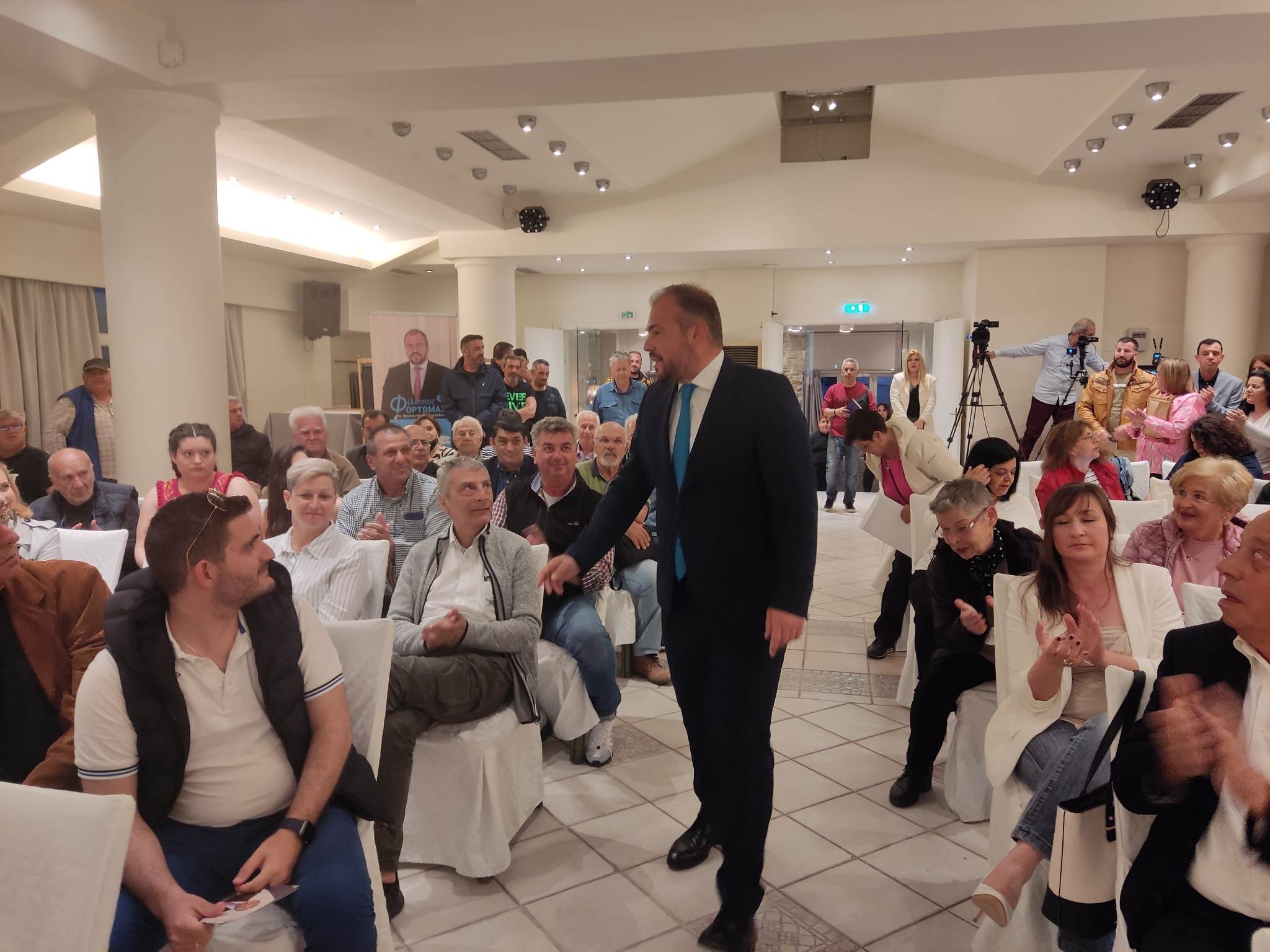 Κατόπιν ο κ. Φίλιππος Φόρτωμας συγκινημένος ανέβηκε στο βήμα, χαρακτηρίζοντας το πολυπληθές ακροατήριο, ως πρόκριμα νίκης για τη Νέα Δημοκρατία και τον Κυριάκο Μητσοτάκη.