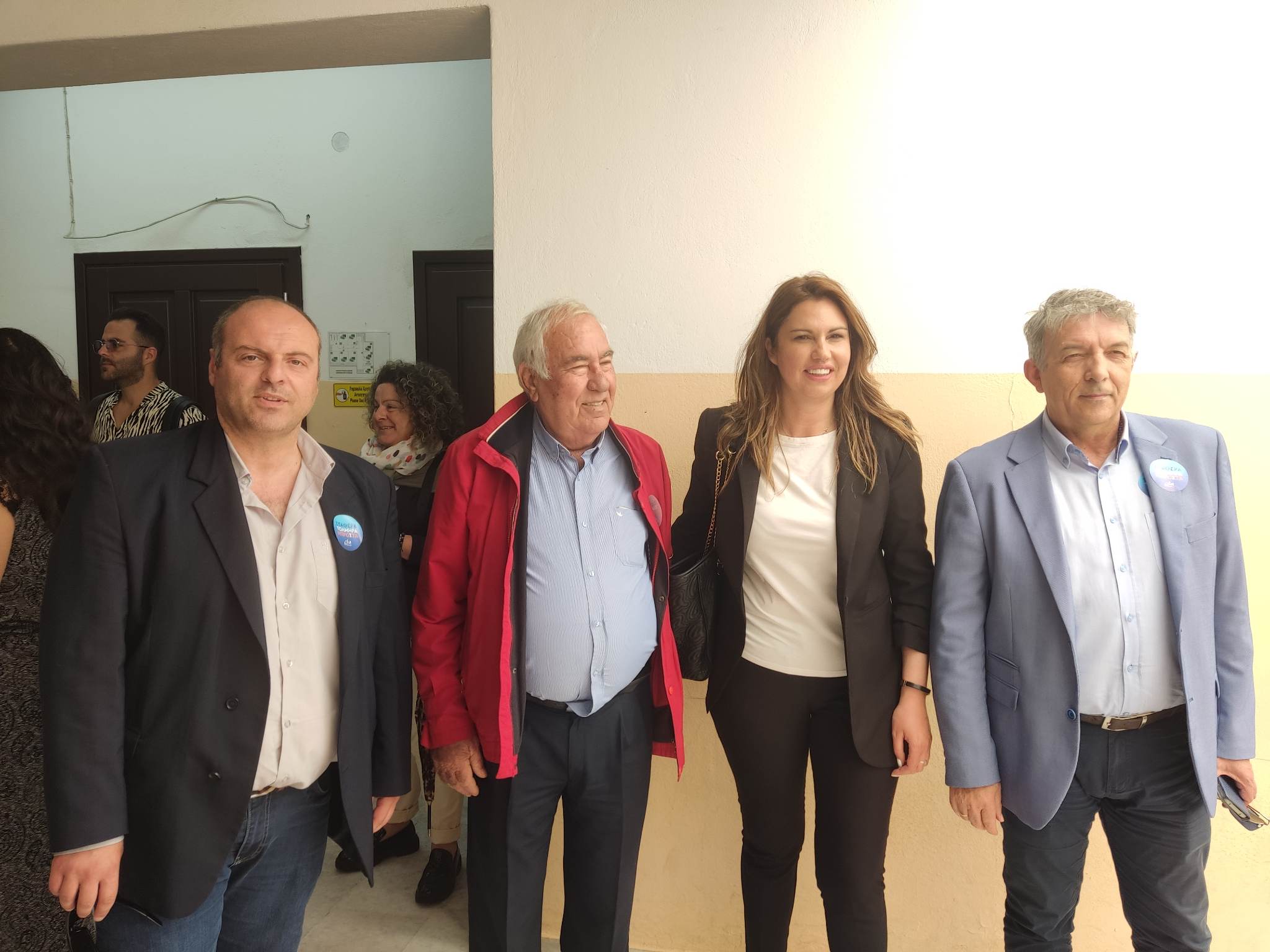 Η ίδια συνομίλησε σε ευχάριστο κλίμα με τους πολίτες που ήταν στο σχολικό συγκρότημα, ενώ έλαβε και ευχές για τη συμμετοχή της στις εκλογές.