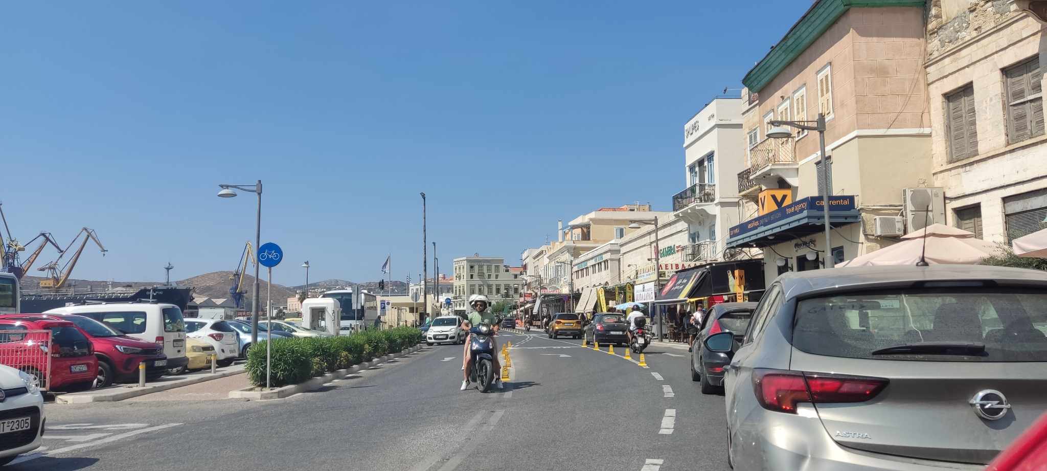 Πρωτίστως έκανε αναφορά σε μέτρα που έχουν ληφθεί και έχουν βοηθήσει στη διαχείριση της δύσκολης κυκλοφοριακής πραγματικότητας στην Ερμούπολη και την παραλία. “Σε συνεργασία με την Αστυνομία, έχουμε ζητήσει και έχουμε πετύχει να υπάρχει αστυνομική δύναμη – Τροχαία σε κομβικά σημεία (ΙΚΑ – Ηρώων), κατά τις επίμαχες ώρες αφιξοαναχωρήσεων των πλοίων, ώστε να επιτυγχάνεται η όσο το δυνατόν αποτελεσματικότερη φορτοεκφόρτωση οχημάτων στο λιμάνι μας, προκειμένου να υπάρχει συνεχής ροή από και προς την πόλη και να μην επιβαρύνεται το παραλιακό μέτωπο”, ανέφερε αρχικά, μιλώντας βέβαια και για την τοποθέτηση εύκαμπτων πλαστικών εμποδίων.