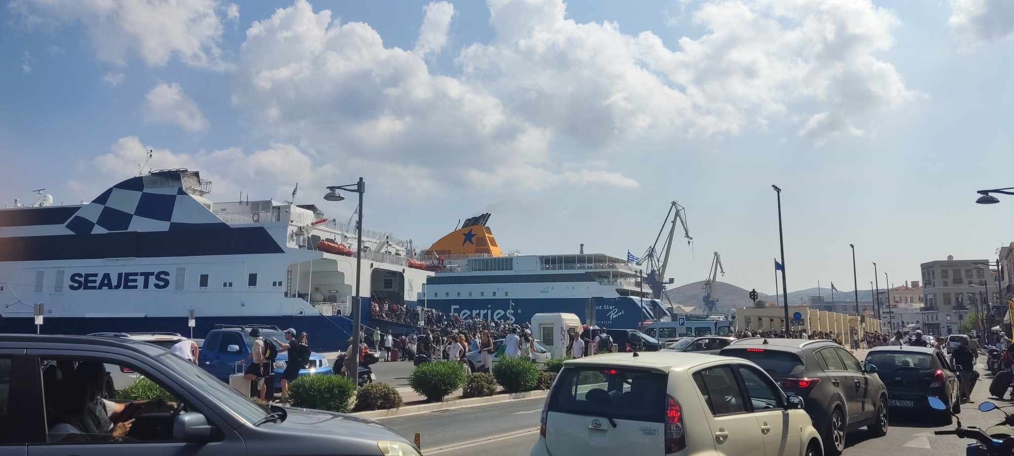 Ωστόσο, όποια κι αν είναι η διαχείριση, πρέπει να σημειωθεί πως τις τελευταίες ημέρες, στο παραλιακό μέτωπο της Ερμούπολης, οι οδηγοί με τα οχήματά τους παραμένουν σχεδόν ακινητοποιημένοι για διαστήματα τετάρτου και 20λεπτου μέχρι να βγουν εκτός πόλης, όταν ταυτόχρονα υπάρχουν αφιξοαναχωρήσεις πλοίων.