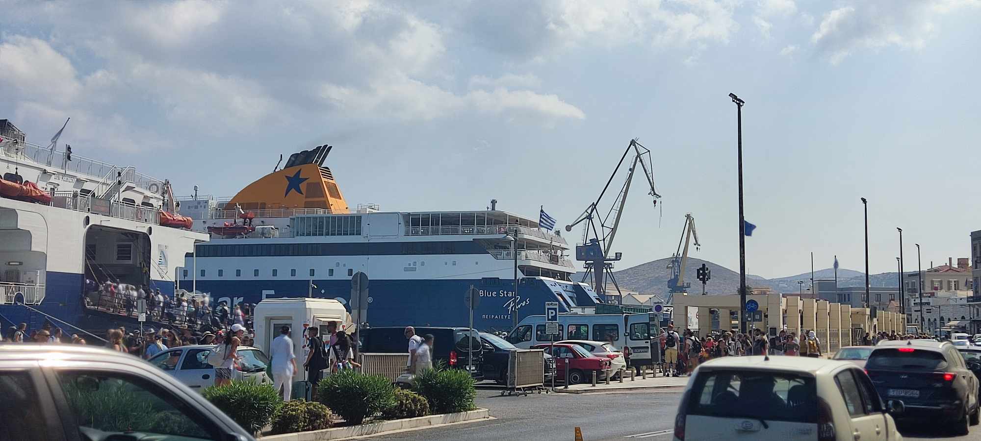 Συγκεκριμένα, προχθές το μεσημέρι και με τις ταυτόχρονες αφίξεις πλοίων της Blue Star Ferries και της SeaJets, άνοιξε η έξοδος για τα οχήματα που αποβιβάστηκαν και από την πλευρά του kiss ‘n’ ride , ώστε να προκληθεί η ηπιότερη όχληση στη θέση της εξόδου – εισόδου του λιμένα (ύψος Πυροσβεστικής).