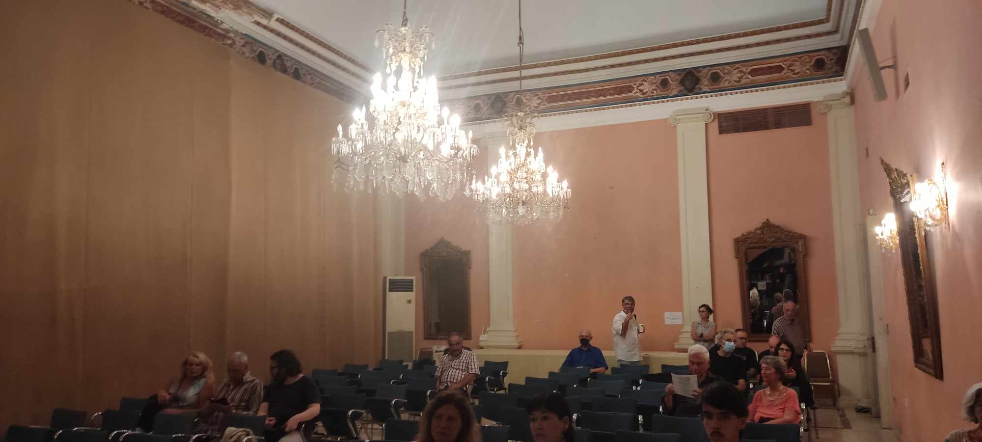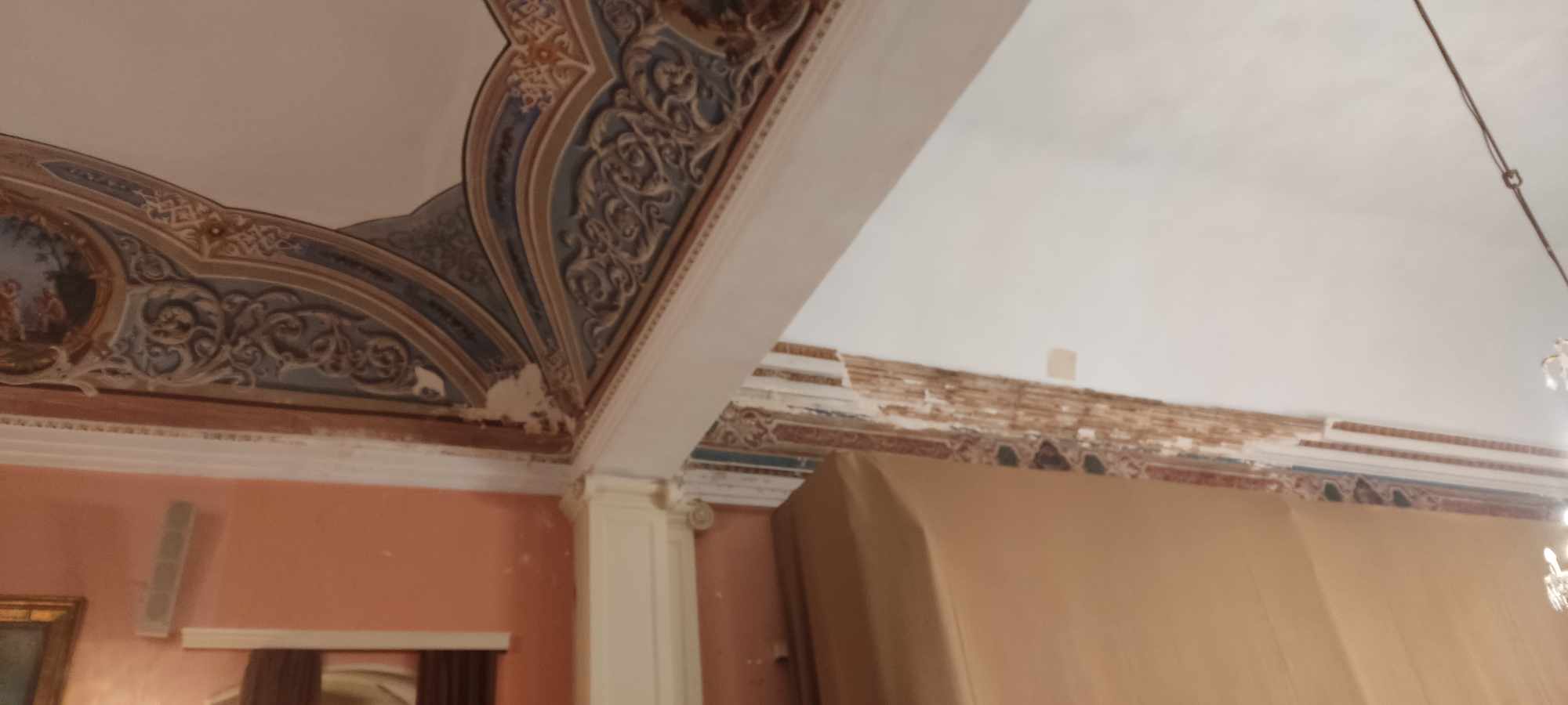 “Κάθε χρόνο, τέτοια εποχή, γίνονται καθαρισμοί των καναλιών ώστε να μη μαζεύονται νερά. Απλά είναι η υγρασία που οφείλεται σε μόνωση η οποία πρέπει να ανανεωθεί. Όμως το κτήριο δεν απαιτεί ένα απλό έργο μόνωσης. Θέλει παραπάνω συντήρηση”, ξεκαθαρίζει, λέγοντας ακόμη πως, “και τα κουφώματά του έχουν προβλήματα και χρειάζονται αντικαταστάσεις και συντηρήσεις. Σε ορισμένα σημεία οι τοίχοι έχουν αποχρωματιστεί και φυσικά έχουμε καταστροφή οροφογραφιών”.