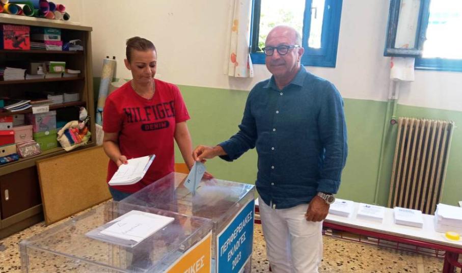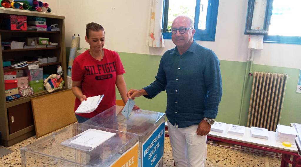 Στο 4ο Πειραματικό Δημοτικό Σχολείο Ερμούπολης άσκησε το εκλογικό του δικαίωμα λίγο μετά τις 11 το πρωί της Κυριακής, ο υποψήφιος στις περιφερειακές εκλογές για τη Σύρο με τον συνδυασμό “Μπροστά το Νότιο Αιγαίο”, Γιώργος Λεονταρίτης.
