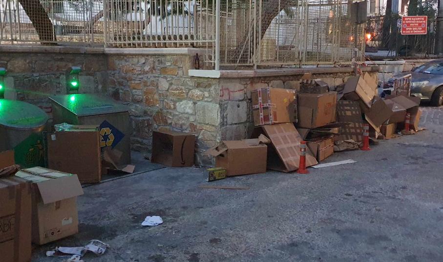 Στον δρόμο, σε πεζοδρόμια και κάτω από οχήματα σκορπίστηκε μεγάλος αριθμός χαρτοκιβωτίων στην περιοχή των υπόγειων κάδων, πλησίον του 2ου Δημοτικού Σχολείου Ερμούπολης, καθώς ασυνείδητοι πολίτες, άφησαν… χύμα την ανακύκλωση.
