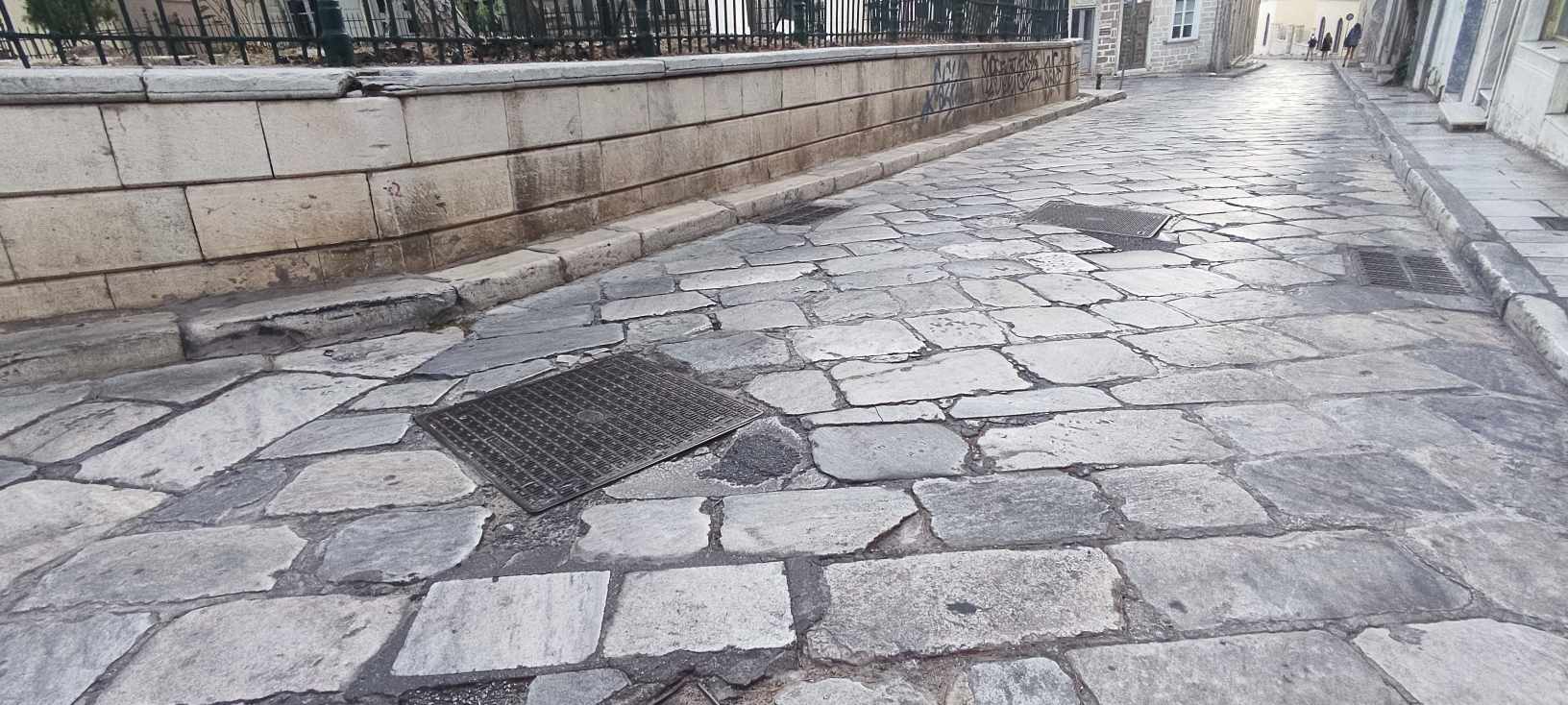 Χωρίς συντηρήσεις ή αποκαταστάσεις παραμένουν πολλά από τα πλακόστρωτα της Ερμούπολης, για τα οποία αν και υπάρχει συγκεκριμένο κονδύλι στον Δήμο, ωστόσο, δυστυχώς, δεν φαίνεται να “τρέχει”, προκειμένου να γίνονται εργασίες για την ασφάλεια των πολιτών.