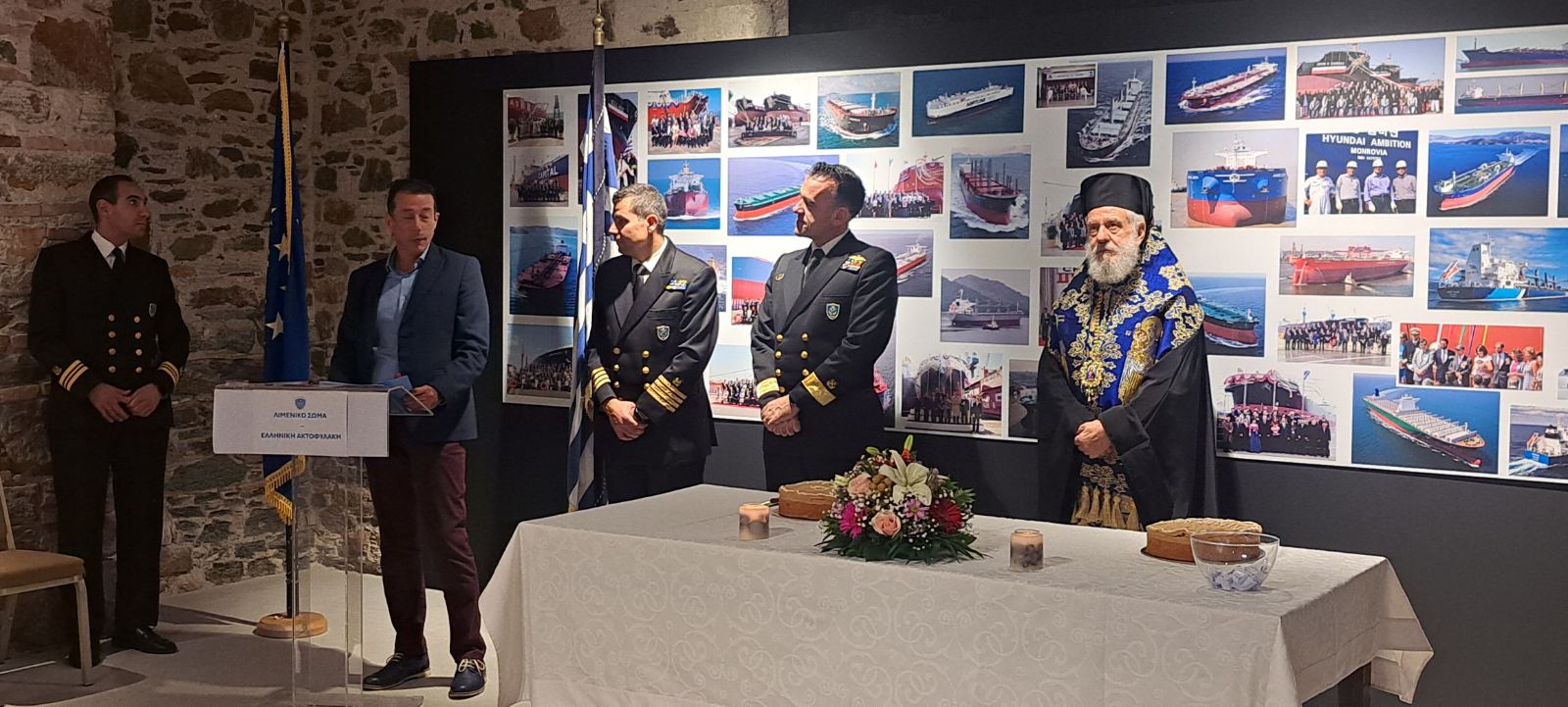 Η κοπή της Πίτας του Αγίου Βασιλείου της 6ης Περιφερειακής Διοικήσεως Λιμενικού Σώματος (Κυκλάδων) και του Λιμεναρχείου Σύρου, πραγματοποιήθηκε την Τρίτη 16 Ιανουαρίου, στον χώρο της πινακοθήκης Σύρου, στο συστεγαζόμενο με τις Υπηρεσίες του Λιμενικού, κτήριο των Παλαιών Αποθηκών Διαμετακομίσεως Εμπορίου, όπου φιλοξενείται η έκθεση «Το Ελληνικό Ναυτιλιακό Θαύμα» του κ. Γεωργίου Φουστάνου.