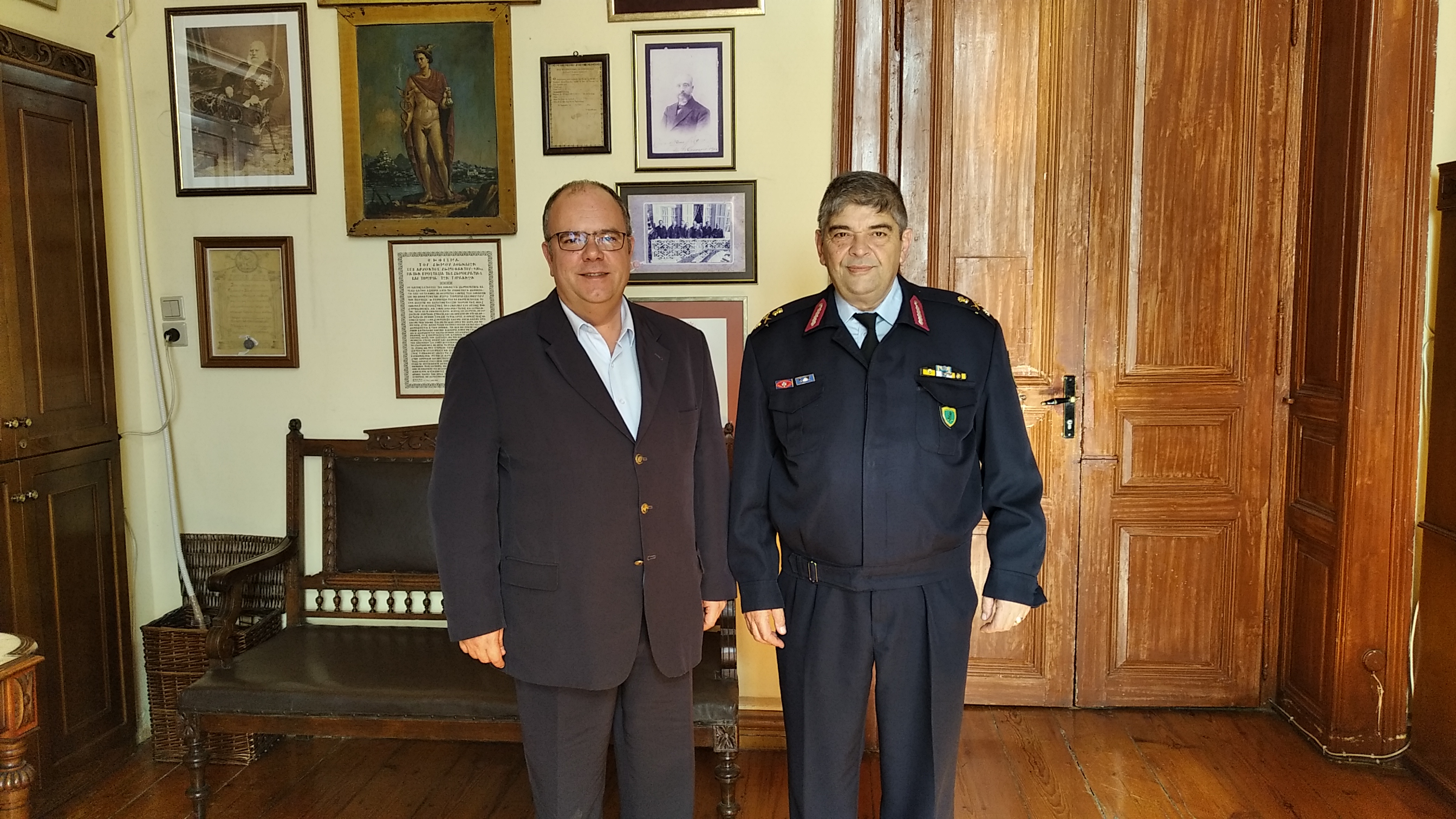 Τον νέο Διευθυντή της Αστυνομικής Διεύθυνσης Κυκλάδων Ταξίαρχο Κωνσταντίνο Αγιασοφίτη υποδέχθηκε σήμερα, Δευτέρα 29 Ιανουαρίου 2024, στο γραφείο του, ο Δήμαρχος Σύρου – Ερμούπολης κ. Αλέξανδρος Αθανασίου, με την ευκαιρία της ανάληψης των καθηκόντων του.