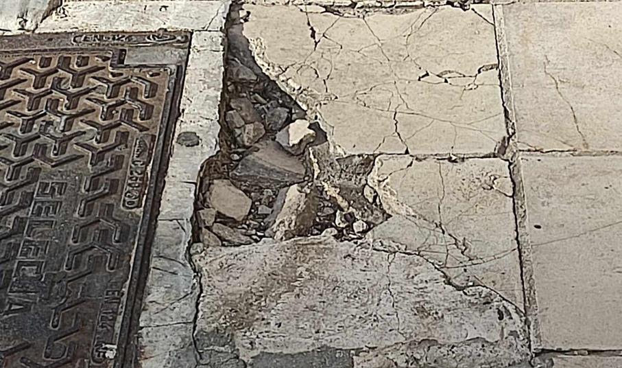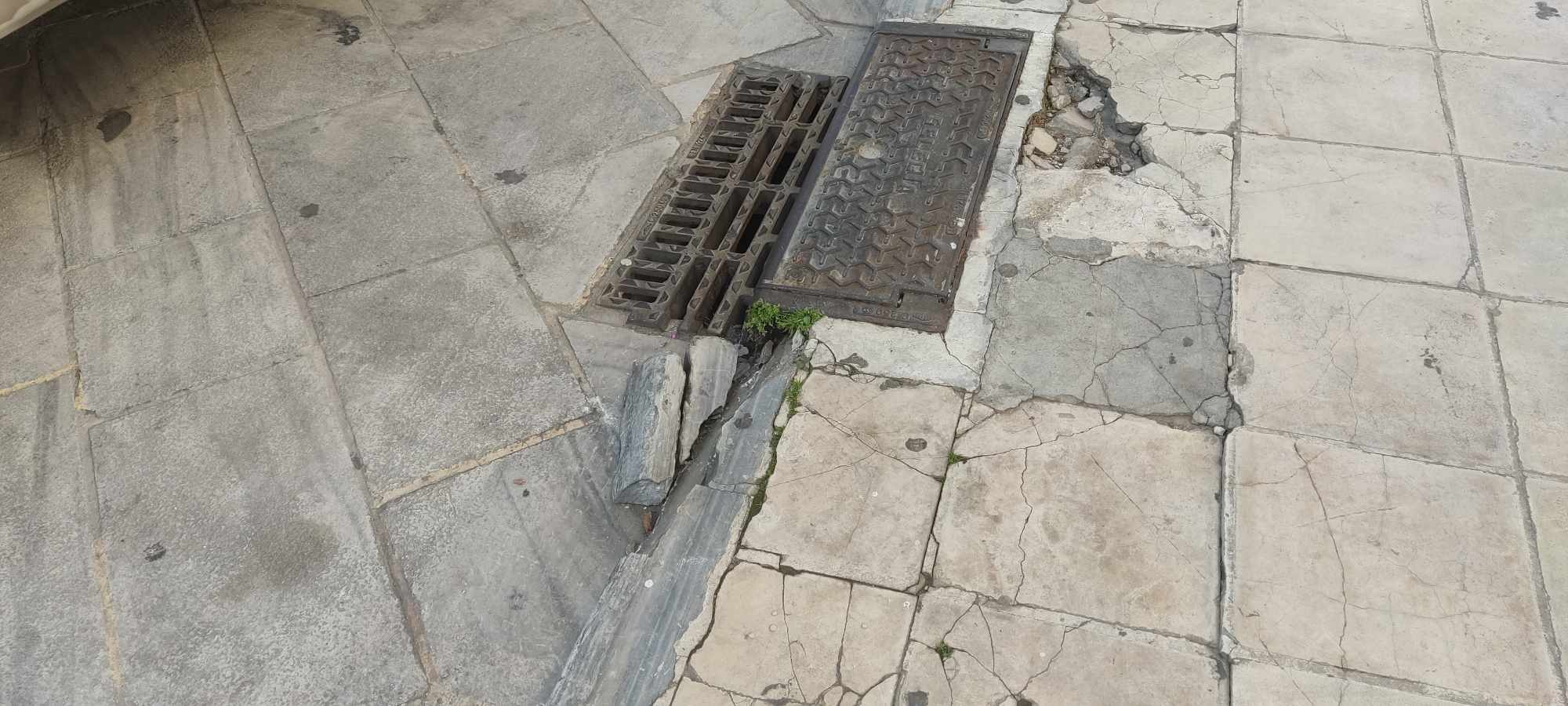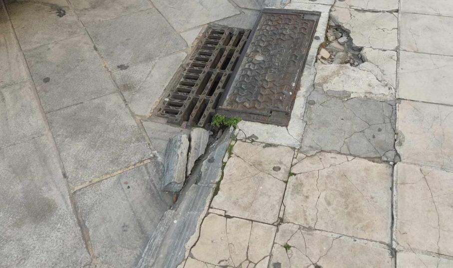 Σοβαρές φθορές φέρουν κάποια από τα πεζοδρόμια του ιστορικού κέντρου της Ερμούπολης για τα οποία ο Δήμος και η Τεχνική Υπηρεσία πρέπει να προβούν άμεσα σε αποκαταστάσεις, καθώς αρκετοί πεζοί έχουν τραυματιστεί.