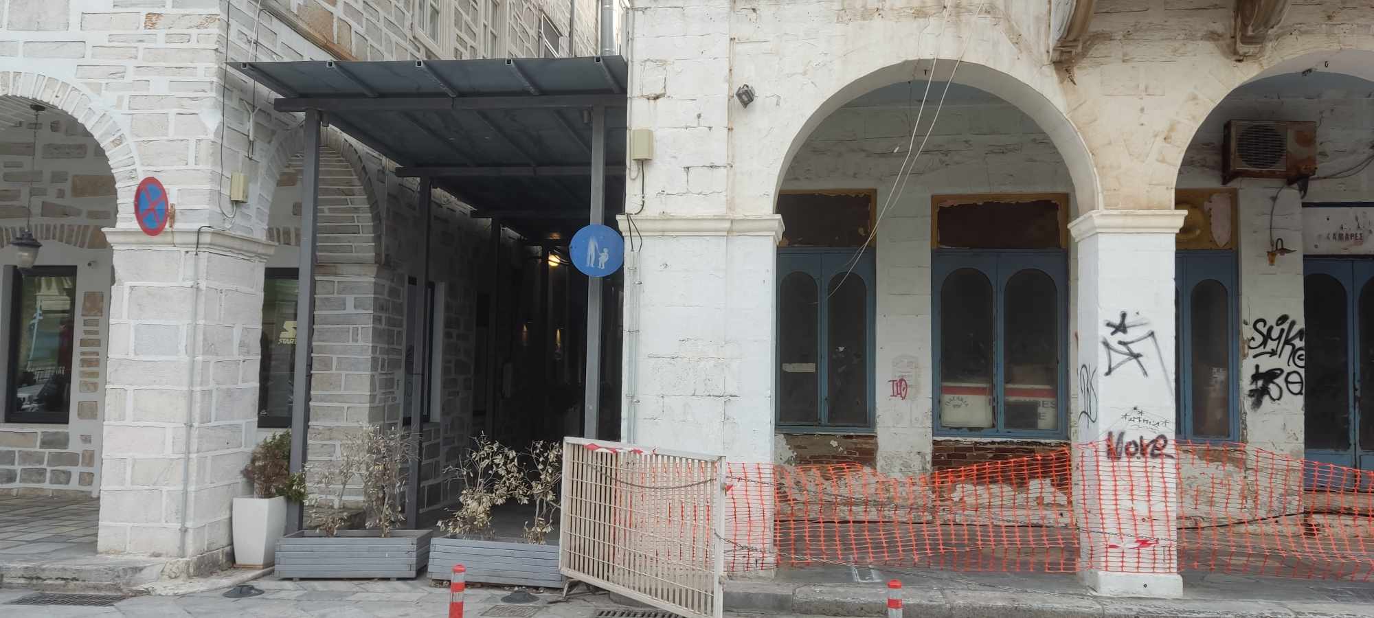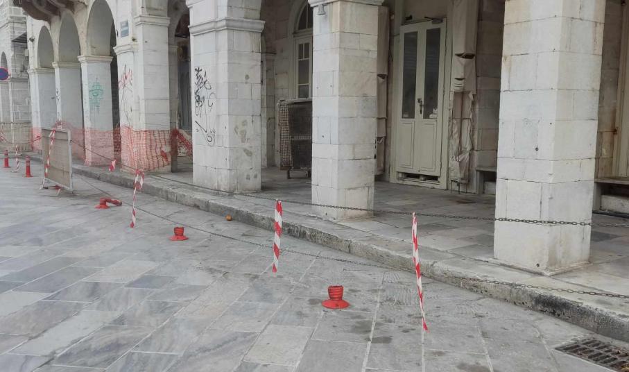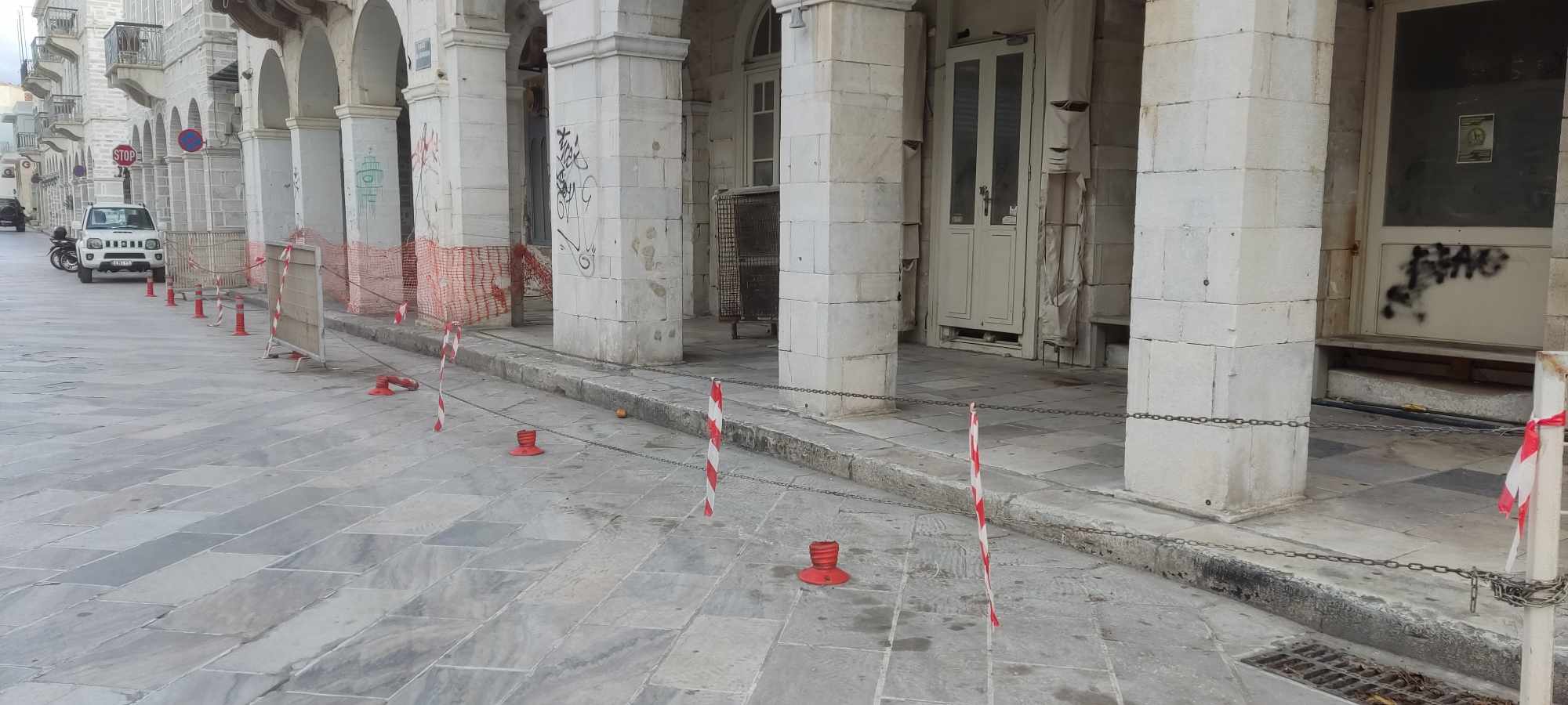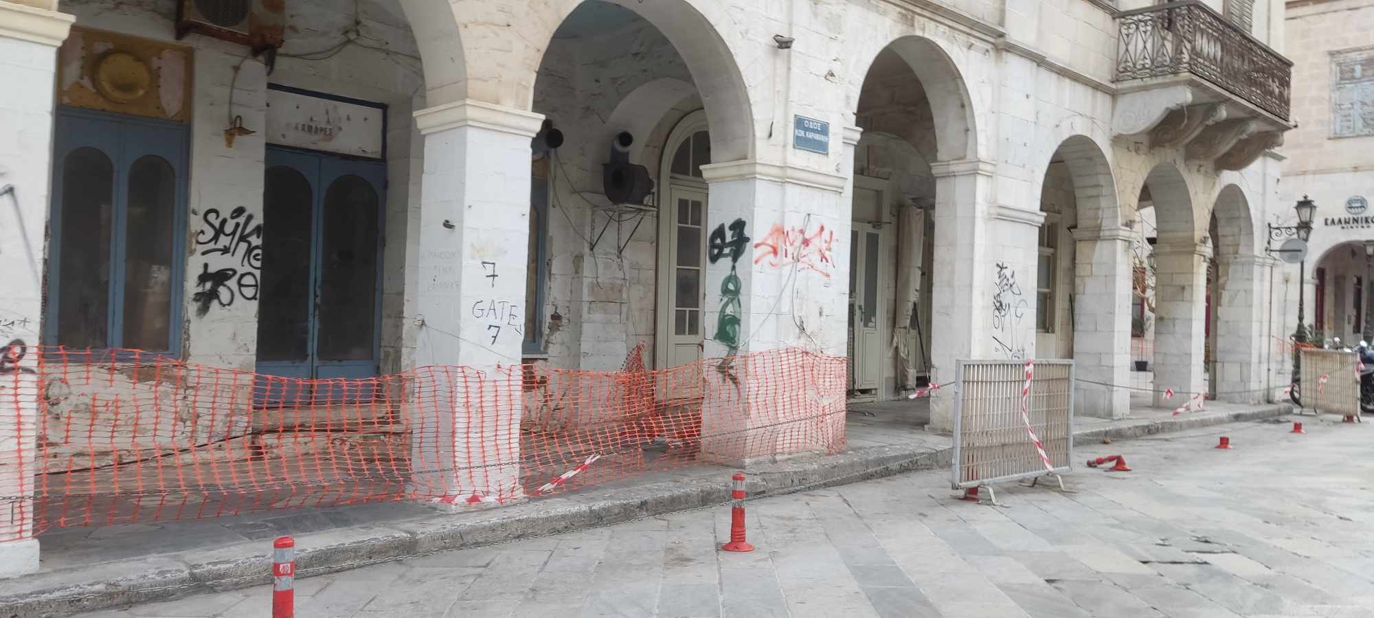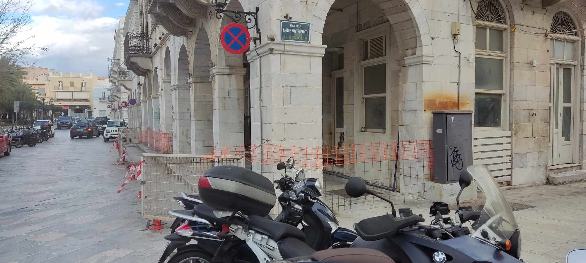 Η ανάγκη λήψης επιπρόσθετων μέτρων για την προστασία πεζών και οδηγών επιβάλλεται να τεθεί στο προσκήνιο αναφορικά με το κτήριο “Κυκλαδικόν” του Κληροδοτήματος Άννης Κουτσοδόντη, πλησίον της πλατείας Μιαούλη, καθώς συνεχώς παραβιάζονται όσα ήδη έχουν ληφθεί, την ίδια στιγμή που το ακίνητο έχει μετατραπεί σε ένα “κουφάρι”.