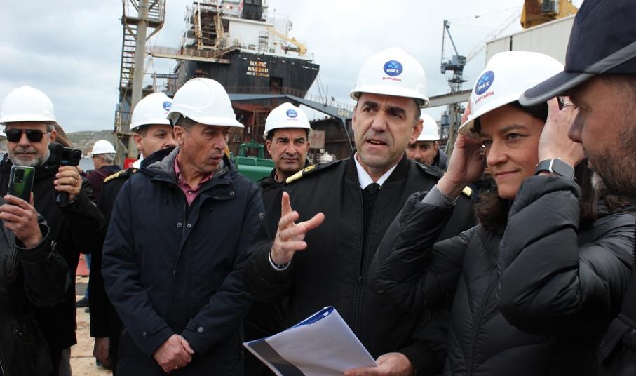 Την κ. Κεραμέως καλωσόρισε ο πρόεδρος του Ομίλου ONEX, Πάνος Ξενοκώστας, ο οποίος συνομίλησε μαζί της για την πορεία του ναυπηγείου και την ευχαρίστησε για τη σημαντική στήριξη του κόμματός της και της κυβέρνησης, σε κρίσιμους χρόνους, που “πυροδότησαν” την αναγέννηση της ναυπηγοεπισκευής στη χώρα.