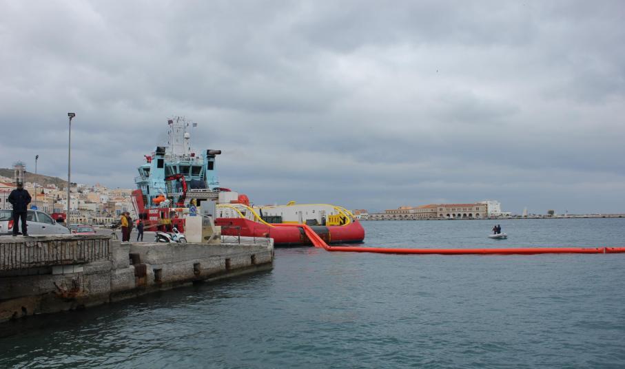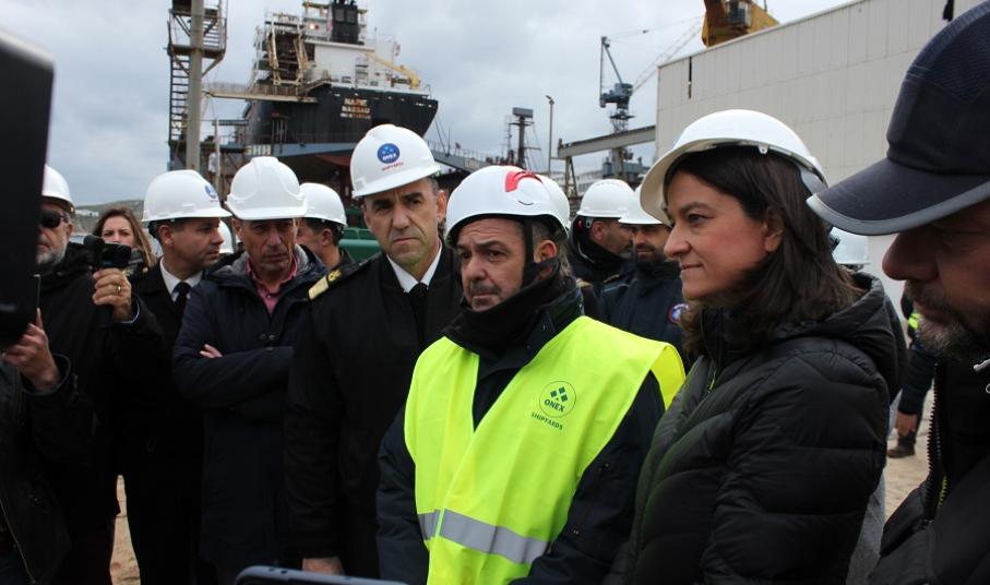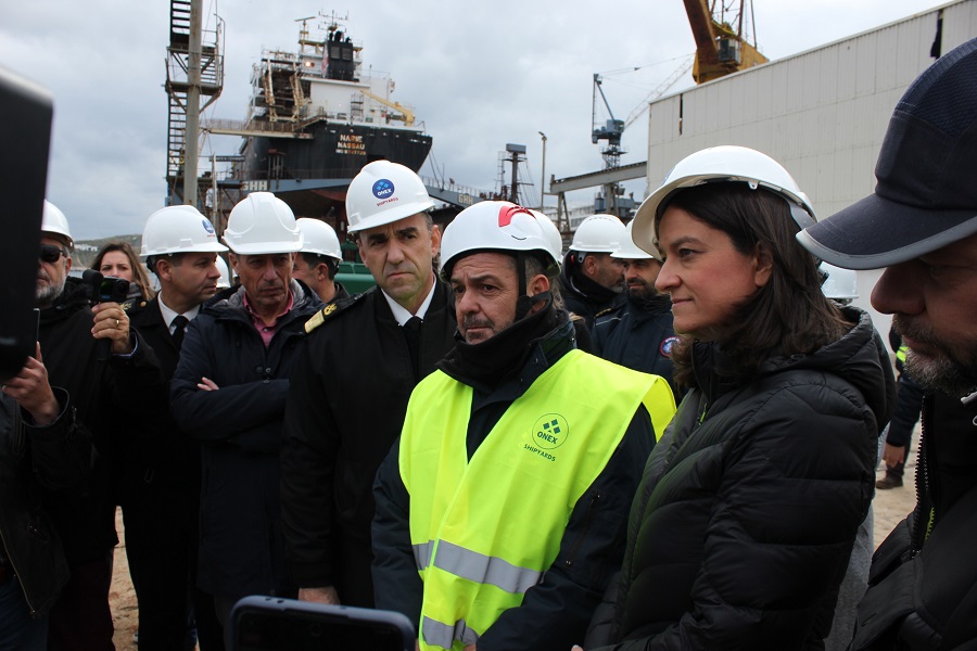 Η υπουργός είχε την ευκαιρία να παρακολουθήσει μία αντιρρυπαντική άσκηση που πραγματοποιήθηκε πλησίον τον εγκαταστάσεων του Νεωρίου, με τη συνδρομή του μεγαλύτερου ναυαγοσωστικού ρυμουλκού ανοικτής θαλάσσης που διαθέτει η χώρα.