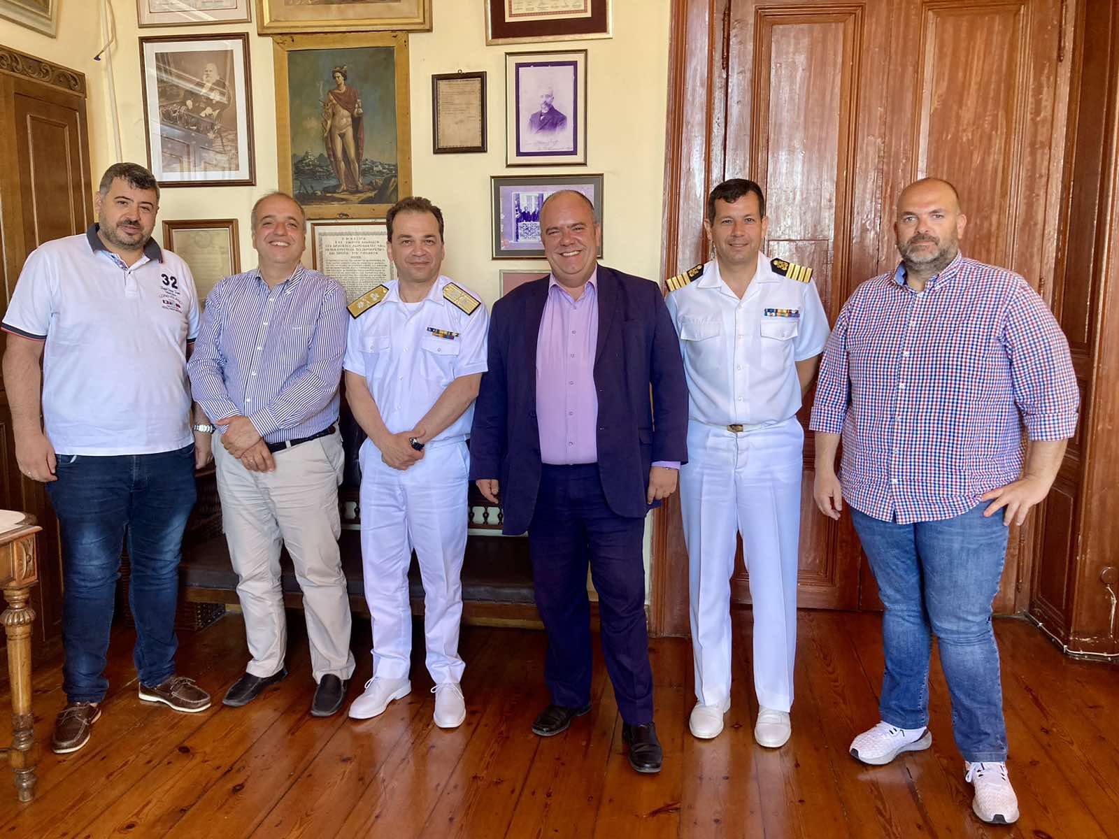 Τον νέο Διοικητή της 6ης Περιφερειακής Διοίκησης Λιμενικού Σώματος Αρχιπλοίαρχο Λ.Σ. Κωνσταντίνο Παρδάλη υποδέχθηκε σήμερα, Πέμπτη 30 Μαΐου 2024, στο γραφείο του, ο Δήμαρχος Σύρου – Ερμούπολης κ. Αλέξανδρος Αθανασίου, με την ευκαιρία της ανάληψης των καθηκόντων του. Στη συνάντηση παρευρέθησαν, επίσης, ο Λιμενάρχης Σύρου Πλοίαρχος ΛΣ Παναγιώτης Καραμήτσας, ο Αντιδήμαρχος Τεχνικών Υπηρεσιών κ. Φραγκίσκος Βακόνδιος, ο Αντιδήμαρχος Διοικητικών Υπηρεσιών κ. Νικόλαος Σκευοφύλαξ και ο Πρόεδρος του Δημοτικού Λιμενικού Ταμείου Σύρου κ. Κωνσταντίνος Γαβιώτης.