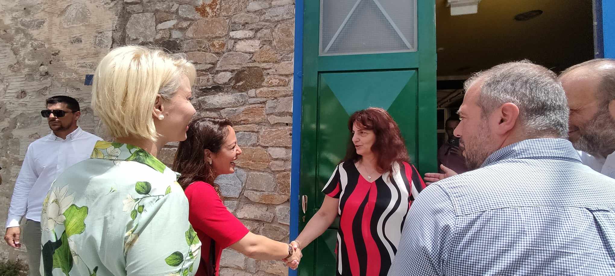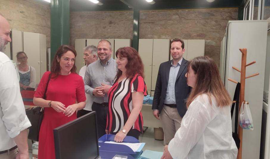 Πλαισιωμένη από τον γενικό γραμματέα Κοινωνικής Ασφάλισης του Υπουργείου, Νίκο Μηλαπίδη, τον διοικητή του ΕΦΚΑ, Αλέξανδρο Βαρβέρη, τον διοικητή της ΔΥΠΑ, Σπύρο Πρωτοψάλτη, καθώς επίσης τους βουλευτές Κυκλάδων, Κατερίνα Μονογυιού και Φίλιππο Φόρτωμα, αλλά και τον πρόεδρο της ΔΕΕΠ Κυκλάδων της Νέας Δημοκρατίας, Χρήστο Καφτηράνη και τον πρόεδρο της ΔΗΜ. Τ.Ο. Σύρου, Στάθη Μπαρμπούνη, η κ. Μιχαηλίδου είχε την ευκαιρία να συζητήσει αναλυτικά στις δύο τοπικές Υπηρεσίες για θέματα εργαζομένων, εργοδοτών, αναζήτησης εργασίας και εξυπηρέτησης ασφαλισμένων.