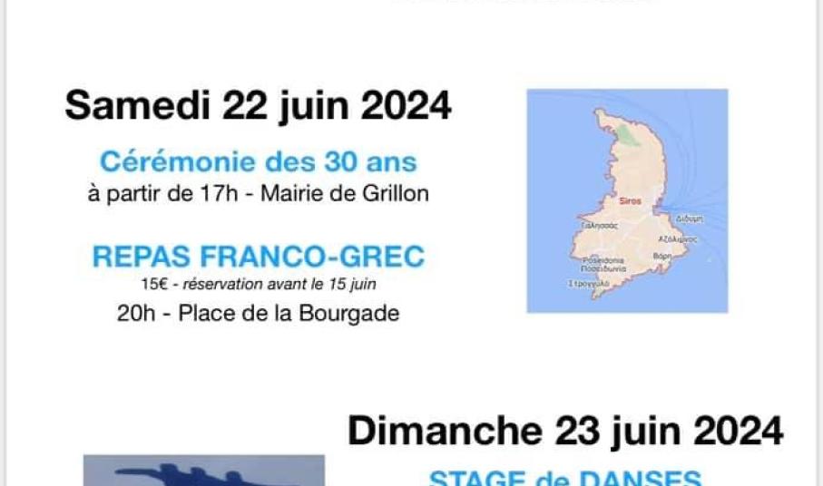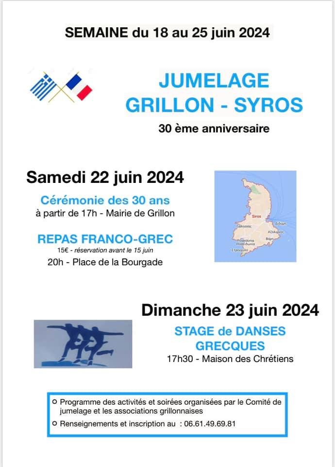 Ανακοίνωση για την 30η επέτειο της αδελφοποίησης του Δήμου Άνω Σύρου με τον Δήμο της Grillon, εξέδωσε η αντιδήμαρχος Τουρισμού, Χρηστιάννα Πάπιτση.