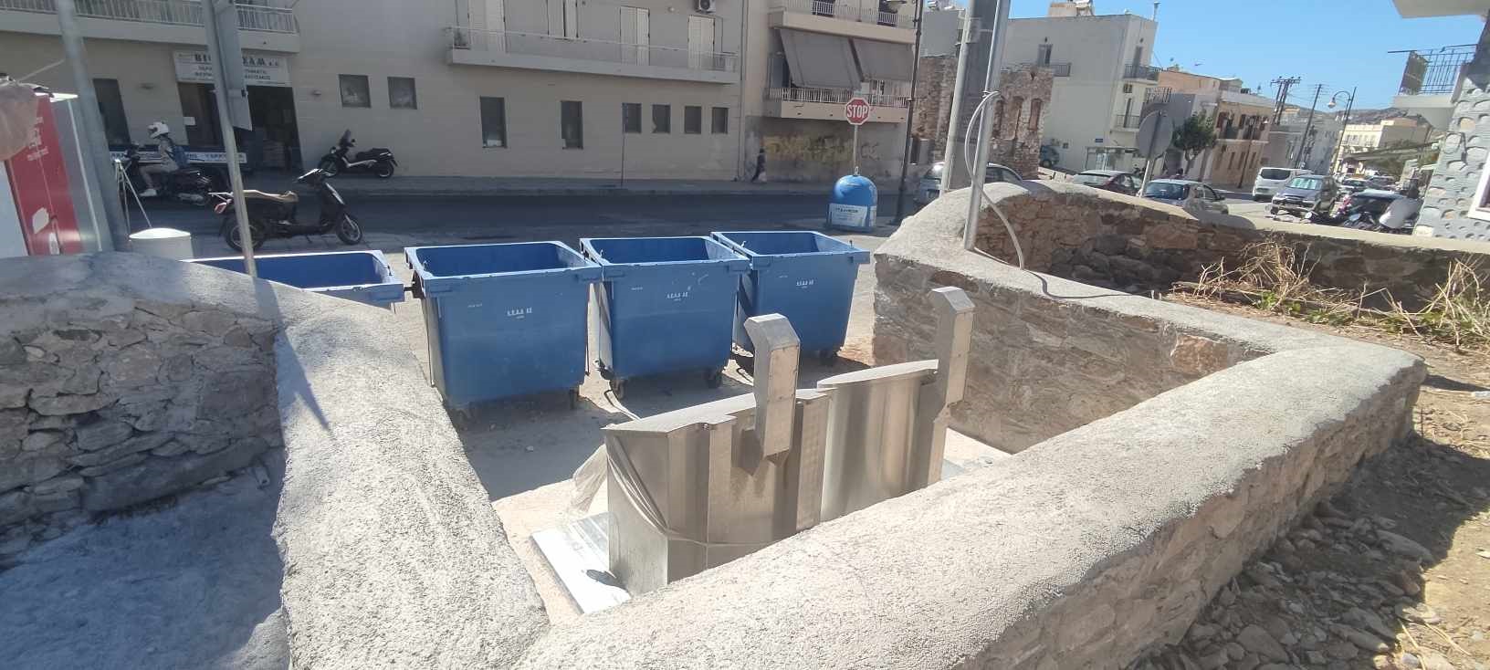 Συμπλήρωσε μάλιστα πως, “η καθυστέρηση οφείλεται σε εκείνους”, επαναλαμβάνοντας πως, “περιμένουμε την παροχή και είχε γίνει αίτημα από το Τμήμα Περιβάλλοντος”. Συμπληρώνοντας μάλιστα πως, “όταν γίνει αυτό θα έρθει το συνεργείο από την Αθήνα για τους βυθιζόμενους κάδους”, απάντησε και στο γιατί ο Δήμος δεν έκανε νωρίτερα το αίτημα, αφού περίμενε την προμήθεια. “Το αίτημά μας είχε γίνει από τότε που τοποθετήθηκαν οι κάδοι”, σχολίασε, εκτιμώντας πως έως τέλος Ιουλίου λογικά θα έχουν τεθεί σε λειτουργία. “Τους μπλε κάδους τους βάλαμε στο σημείο γιατί κατά καιρούς είχαμε οχλήσεις και παράπονα ότι τους έβρισκαν στον δρόμο και υπήρχε επικινδυνότητα. Είχε συμβεί μάλιστα, ημέρα που με ενημέρωσαν από την Αστυνομία και τους μαζέψαμε από τον δρόμο για να μη γίνει και κάποιο ατύχημα”, ανέφερε πρωτίστως για την τοποθέτηση των παλιών μπλε κάδων στο σημείο, μπροστά από τα υπόγεια συστήματα, λέγοντας παρακάτω πως, “θεωρώ πως μέσα στον μήνα θα τους έχουμε βάλει σε λειτουργία”.