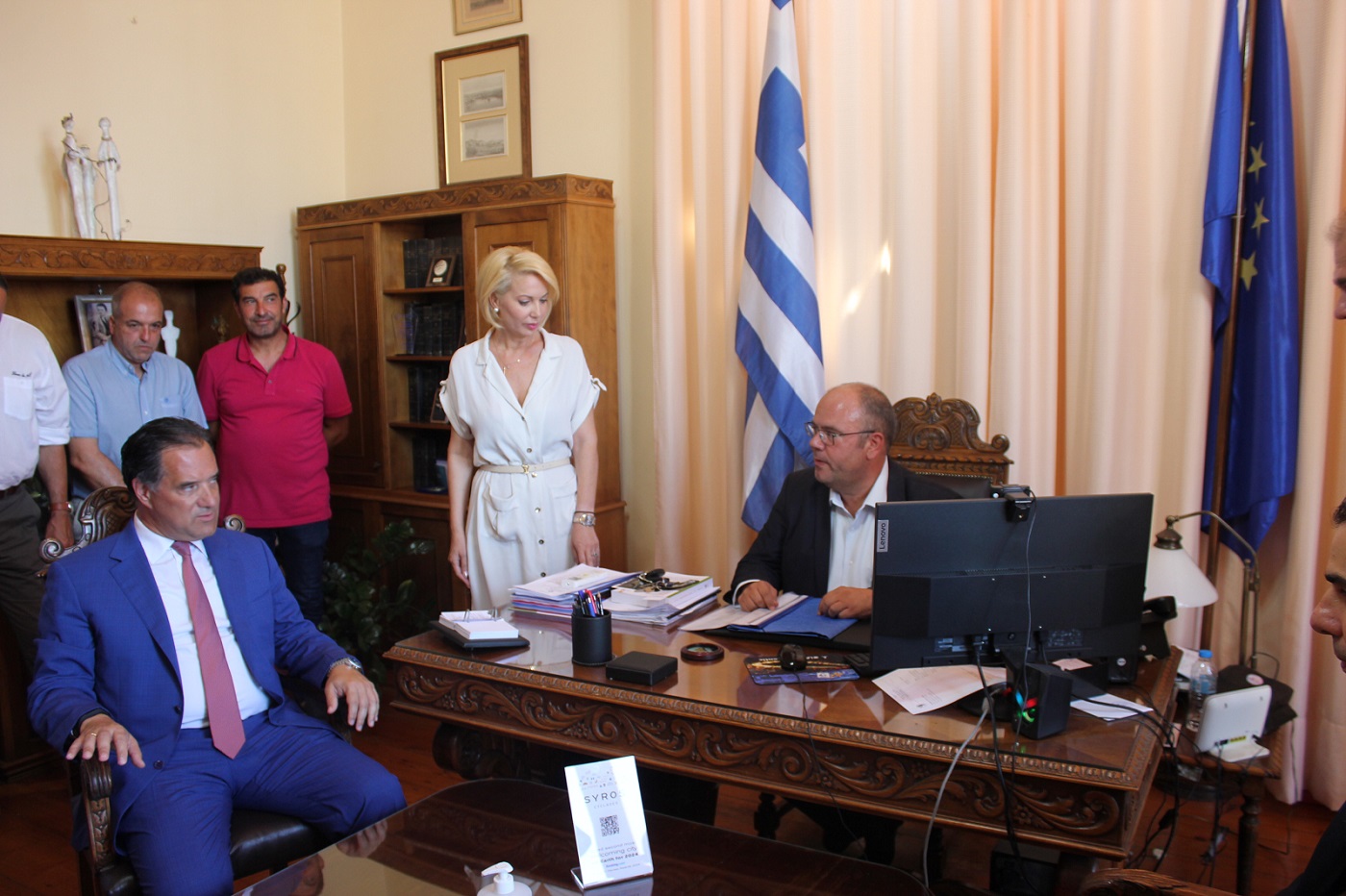 Των βασικών συναντήσεων του υπουργού Υγείας, Άδωνι Γεωργιάδη σε Νοσοκομείο Σύρου και με τους δημάρχους των Κυκλάδων για τις υπόλοιπες υγειονομικές δομές των νησιών, προηγήθηκε η επίσκεψη του τόσο στον Δήμο Σύρου – Ερμούπολης, όσο και στην έδρα της Περιφέρειας Ν. Αιγαίου.