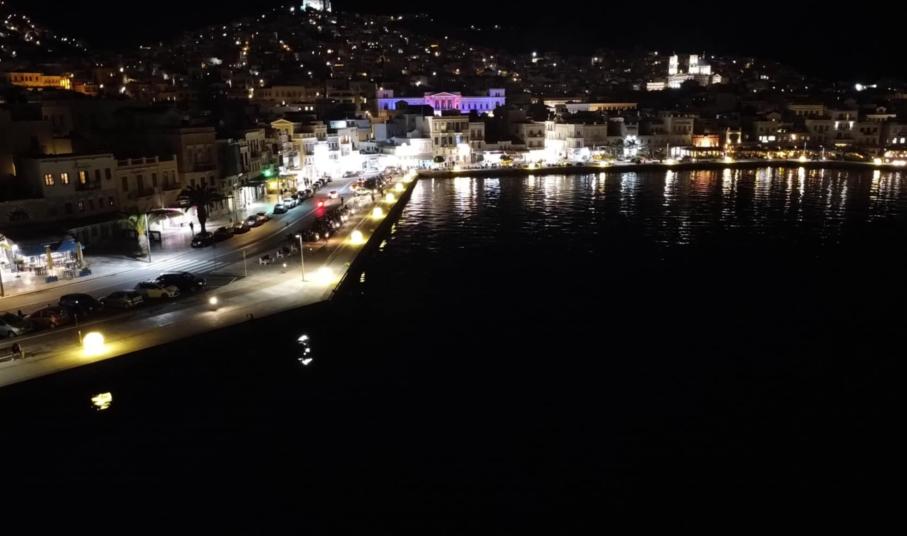 Το άναμμα έγινε το απόγευμα της Πέμπτης και ως εκ τούτου, επισήμως η Ερμούπολης έχει φορέσει τα γιορτινά της.