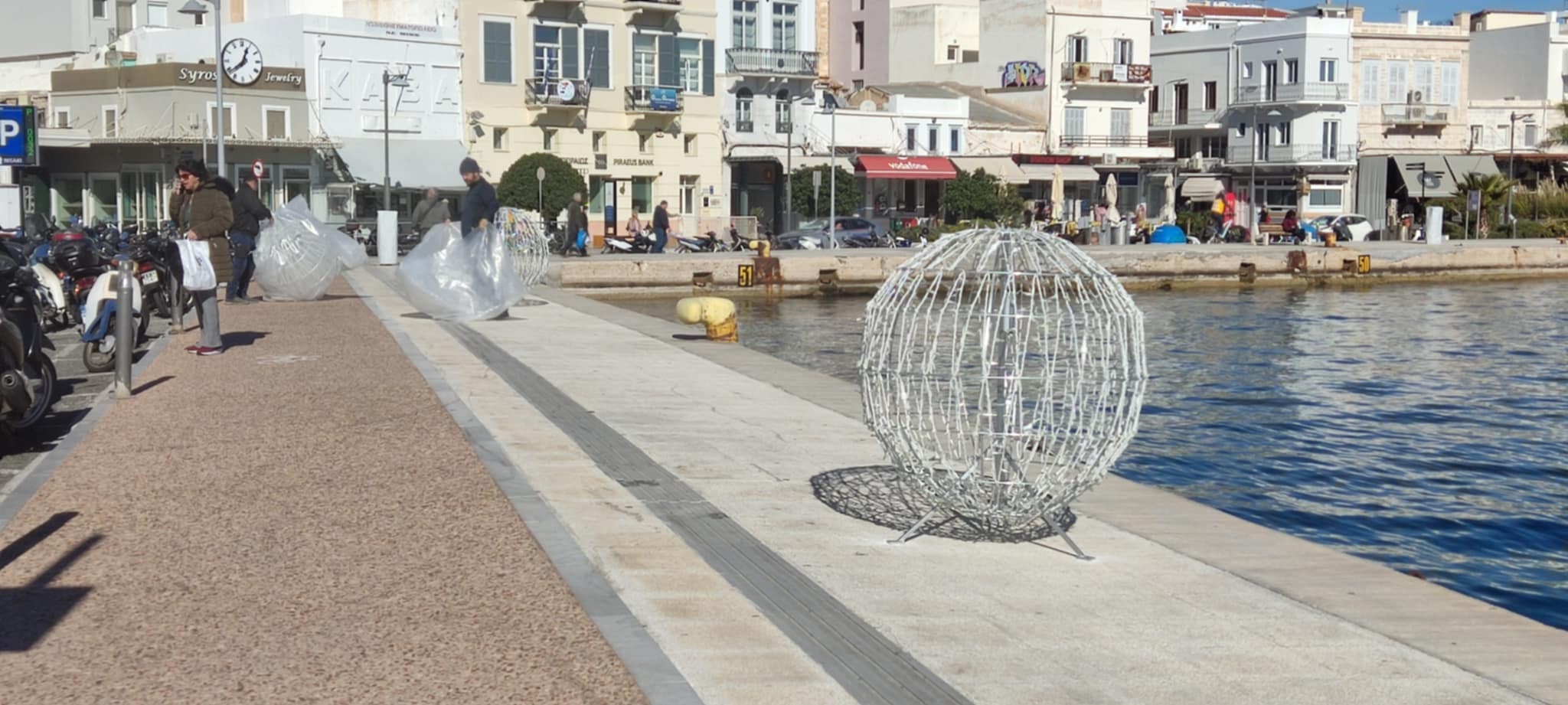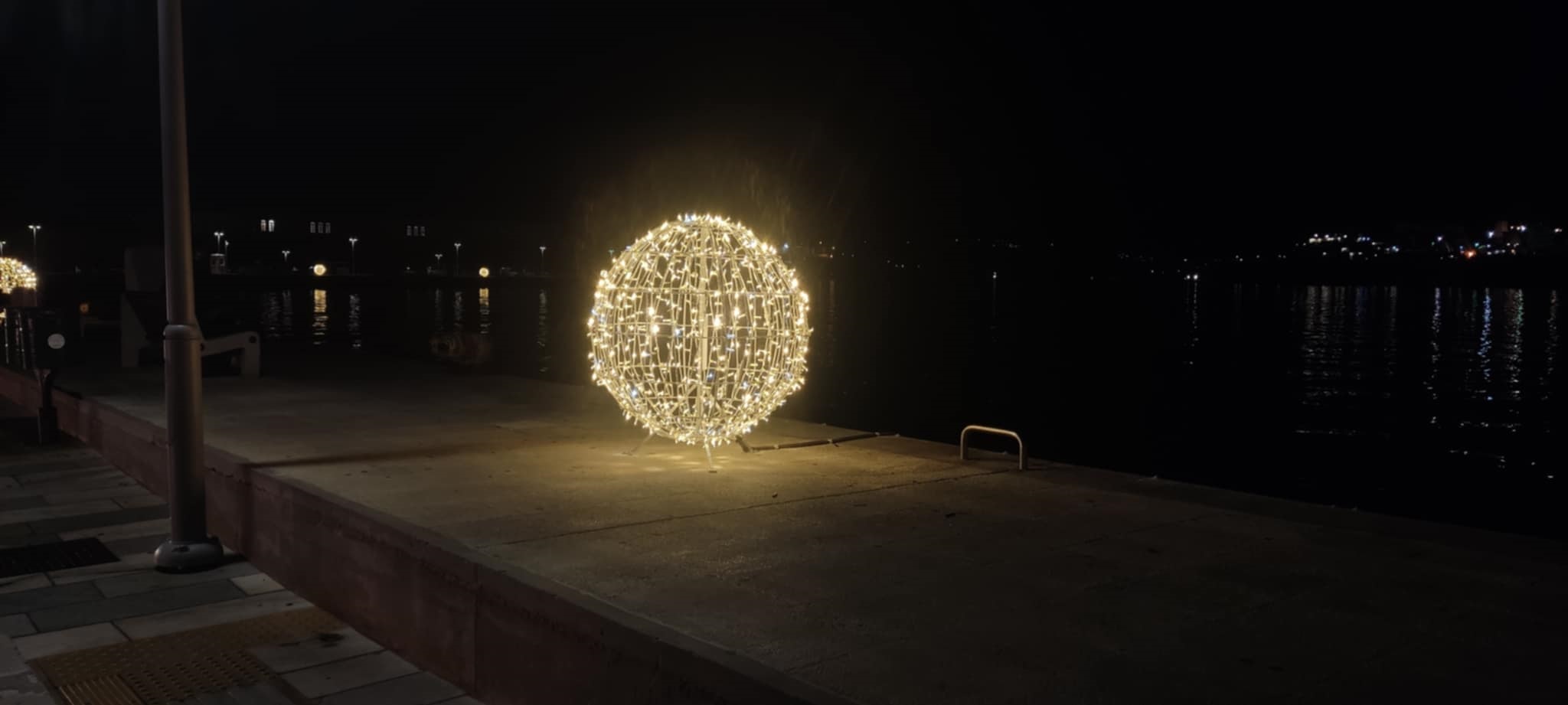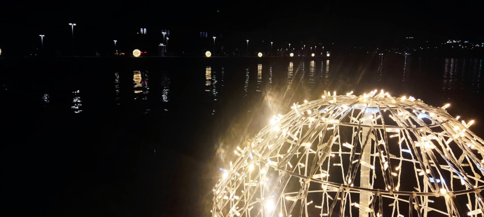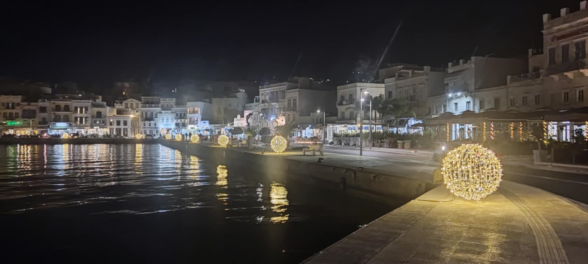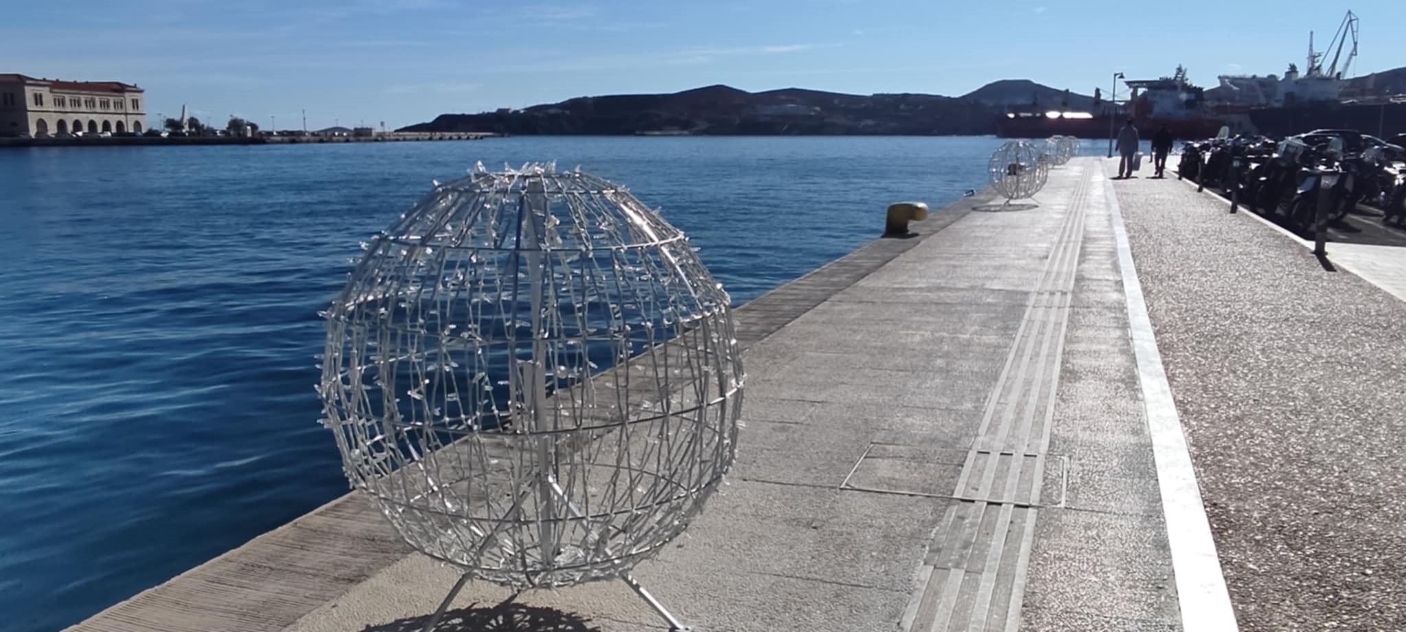 Συγκεκριμένα, για όλο το παραλιακό τμήμα προμηθεύτηκε και στόλισε μεγάλα φωτιστικά σε σχήμα χριστουγεννιάτικης μπάλας, τα οποία ιδιαιτέρως τις βραδινές ώρες φωτίζουν πολύ όμορφα και αναδεικνύουν την περιπατητική διαδρομή.