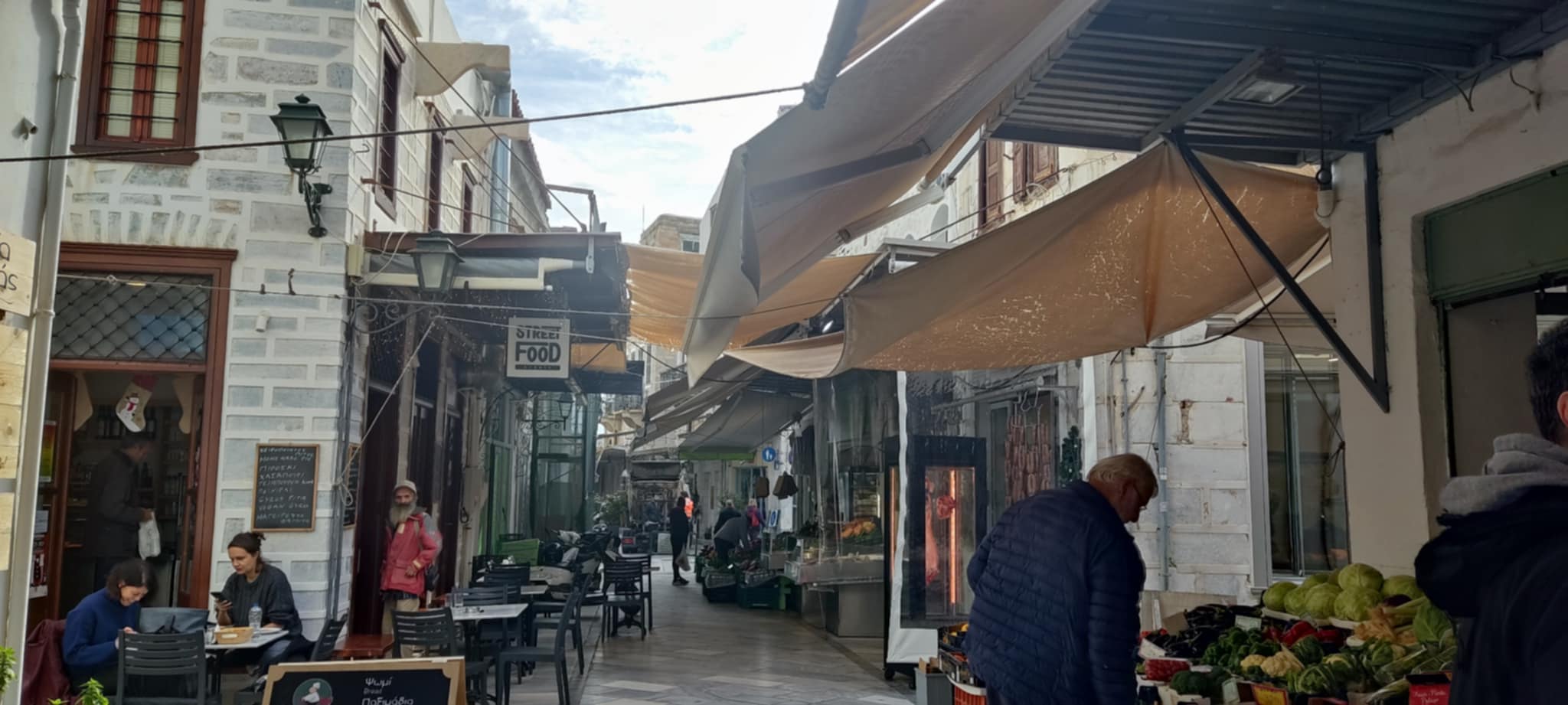 Για τη σημερινή εικόνα της παραδοσιακής αγοράς, ανέφερε πως “δυστυχώς, αν παρατηρήσουμε το ιστορικό κέντρο, ο πιο παρατημένος εμπορικός δρόμος είναι η οδός Χίου. Έχει κλειστά μαγαζιά και στέγαστρα που οι ίδιοι οι επαγγελματίες δεν ενδιαφερόντουσαν. Η οδός Χίου είναι υποβαθμισμένη, με εξαίρεση μόνο στέγαστρα που λίγοι επαγγελματίες τα έχουν φτιάξει εξαιρετικά”.