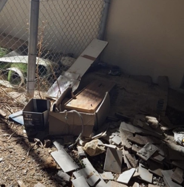 Παράλληλα, ο χώρος εκτός της περίφραξης θυμίζει σκουπιδότοπο αφού σε ένα σημείο παραμένει πεταμένο ακόμη και ένα παλιό τέρμα του παλαιού γηπέδου ποδοσφαίρου.
