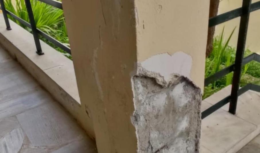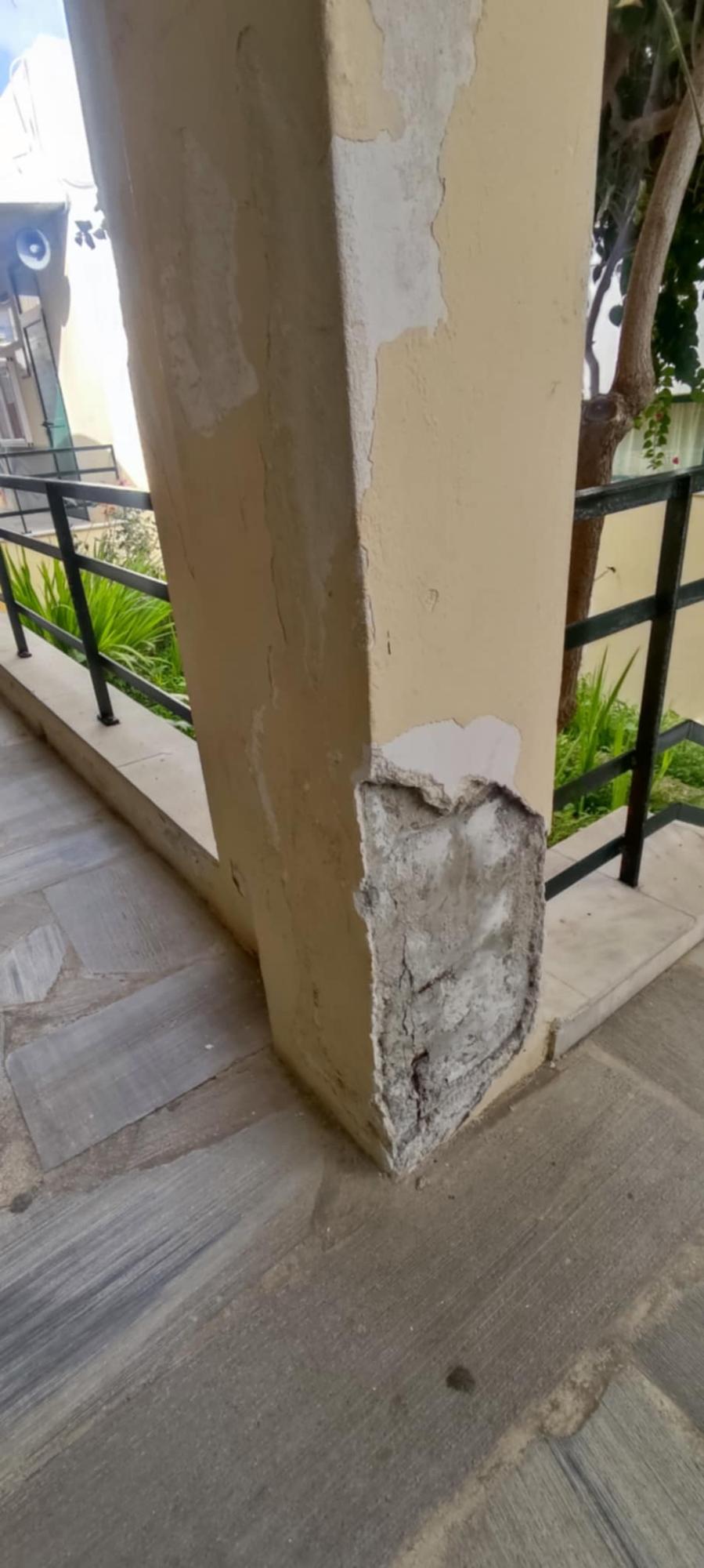 Στο ίδιο έγγραφο έχουν επισυνάψει και φωτογραφικό υλικό, παρόμοιο με αυτό που έχει η “Κοινή Γνώμη”. “Στη συνέχεια του εγγράφου επισυνάπτουμε κάποιες ενδεικτικές φωτογραφίες επικίνδυνων σημείων, ώστε να αποκτήσετε μια καλύτερη άποψη της κατάστασης των κτηρίων, όπου φαίνονται οι αποκολλημένοι σοβάδες, πολλά σαθρά σημεία έτοιμα και αυτά να αποκολληθούν και βέβαια η έντονη οξείδωση του οπλισμού που βρίσκεται εκτεθειμένος σε αρκετά σημεία (κολώνες, δοκάρια και πλάκες) με αποτέλεσμα η κατάσταση των κτηρίων να επιδεινώνεται ραγδαία μέρα με την ημέρα”, περιγράφουν, λέγοντας ακόμη πως υπάρχουν σημεία τα οποία κρίνουν πιο επικίνδυνα.