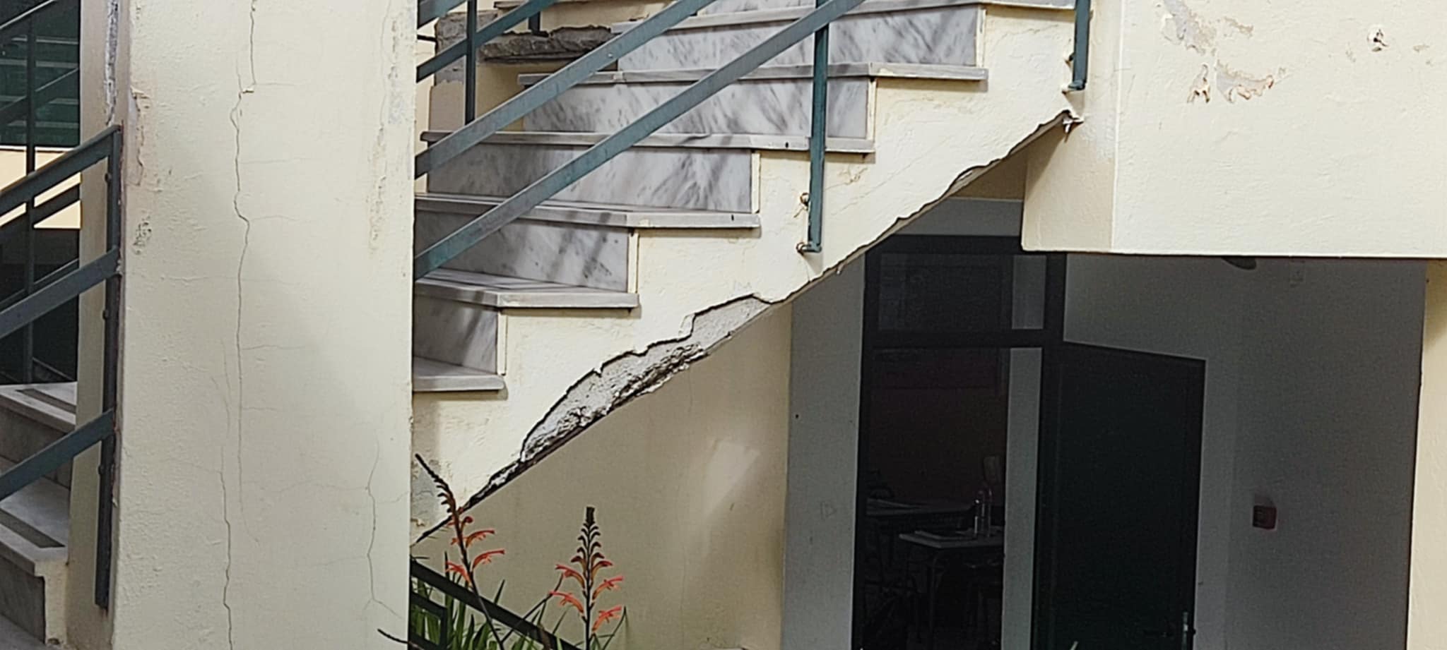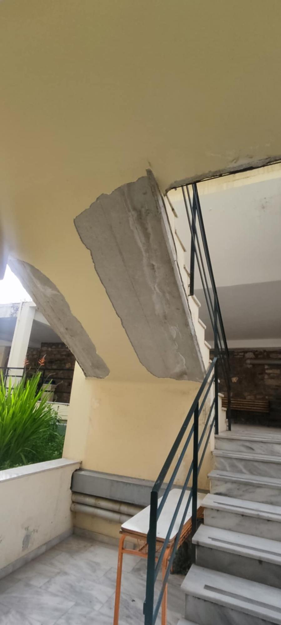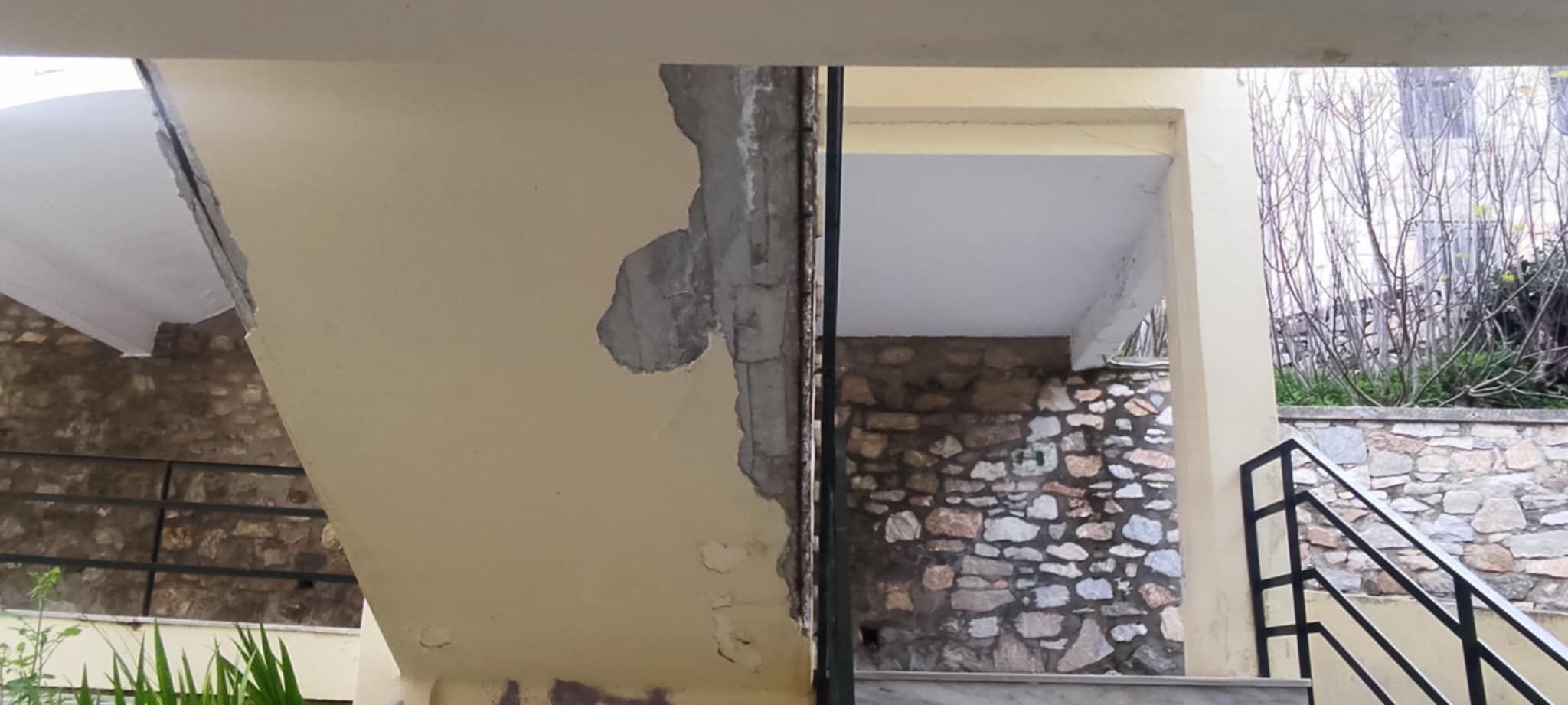 Μάλιστα, εξηγούν χαρακτηριστικά πως το μεγαλύτερο πρόβλημα εντοπίζεται “στις σκάλες και στο στέγαστρο διαδρόμων προς τις αίθουσες διδασκαλίας από όπου γίνεται καθημερινά και με μεγάλη συχνότητα η διέλευση όλων των χρηστών των κτηρίων”, καθώς αυτό το τμήμα αποτελεί επί της ουσίας και την κύρια “έξοδο” των μαθητών και των εκπαιδευτικών σε περίπτωση σεισμικής δόνησης.