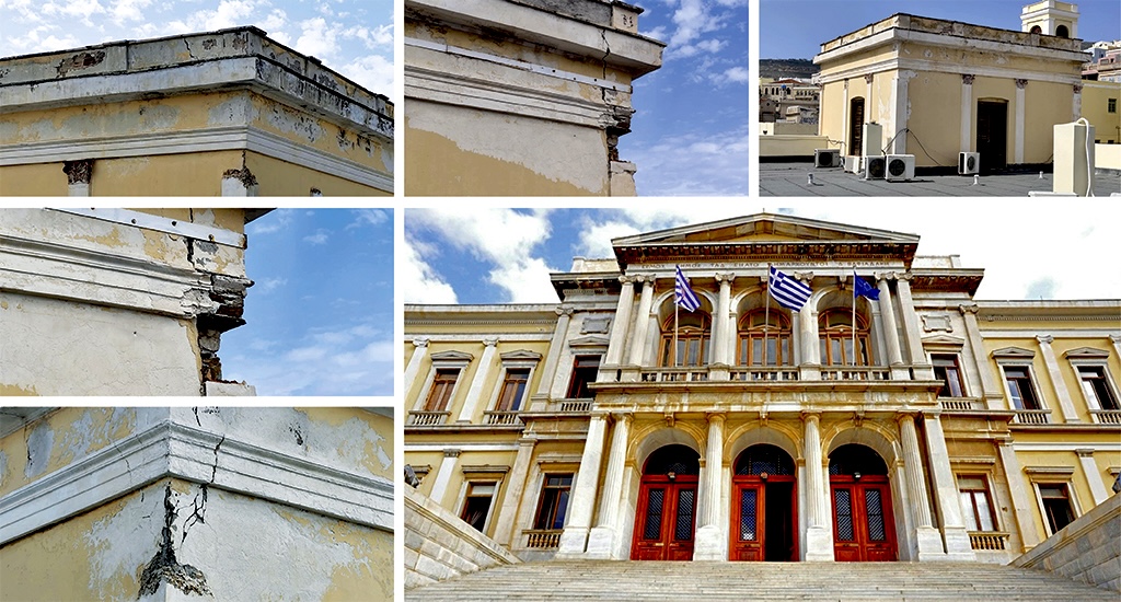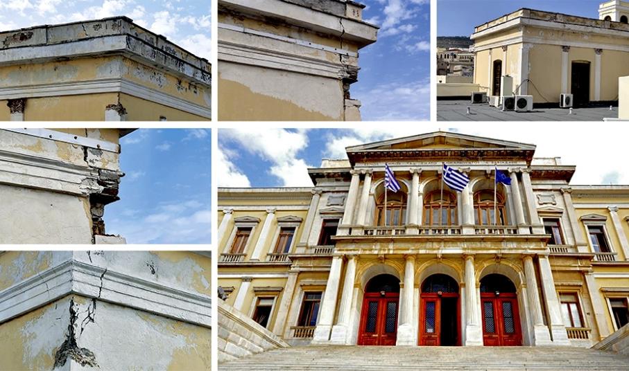 Ιστορική μπορεί να χαρακτηριστεί η σημερινή ημέρα για το Δημαρχείο Σύρου - Ερμούπολης και τον Δήμο, καθώς από το πρωί άρχισαν οι εργασίες για τη μεγάλη παρέμβαση των σχεδόν 2 εκατ. ευρώ, που αφορά στην αποκατάσταση των εξωτερικών όψεών του.