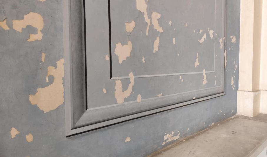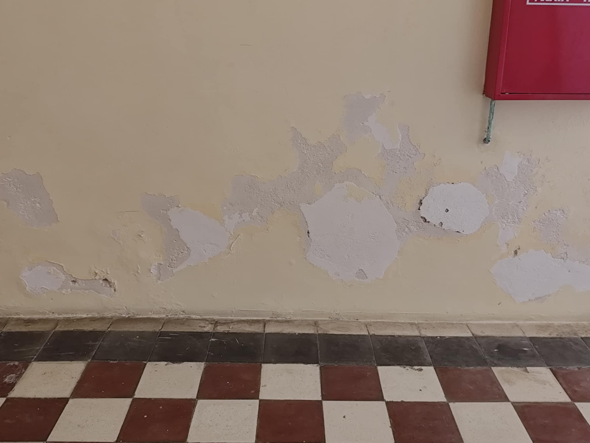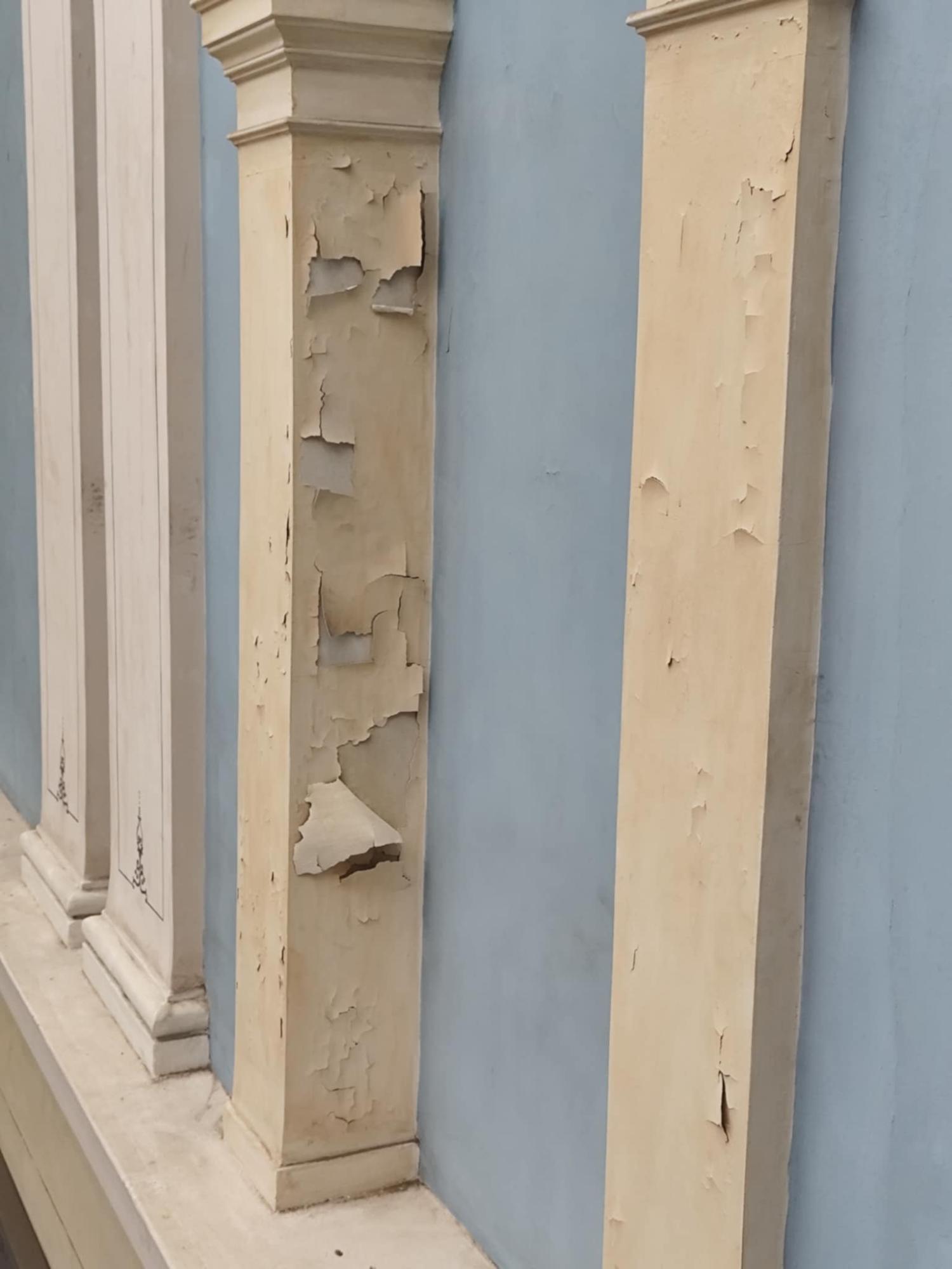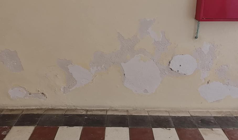 Παρομοίως, αποχρωματισμούς, αλλά και αποκολλήσεις “φύλλων” σοβάδων διαπιστώνει ο κάθε πολίτης που διέρχεται στους διαδρόμους του, με αποτέλεσμα τα σχόλια να είναι αρνητικά για την εσωτερική κατάσταση του Δημαρχείου.