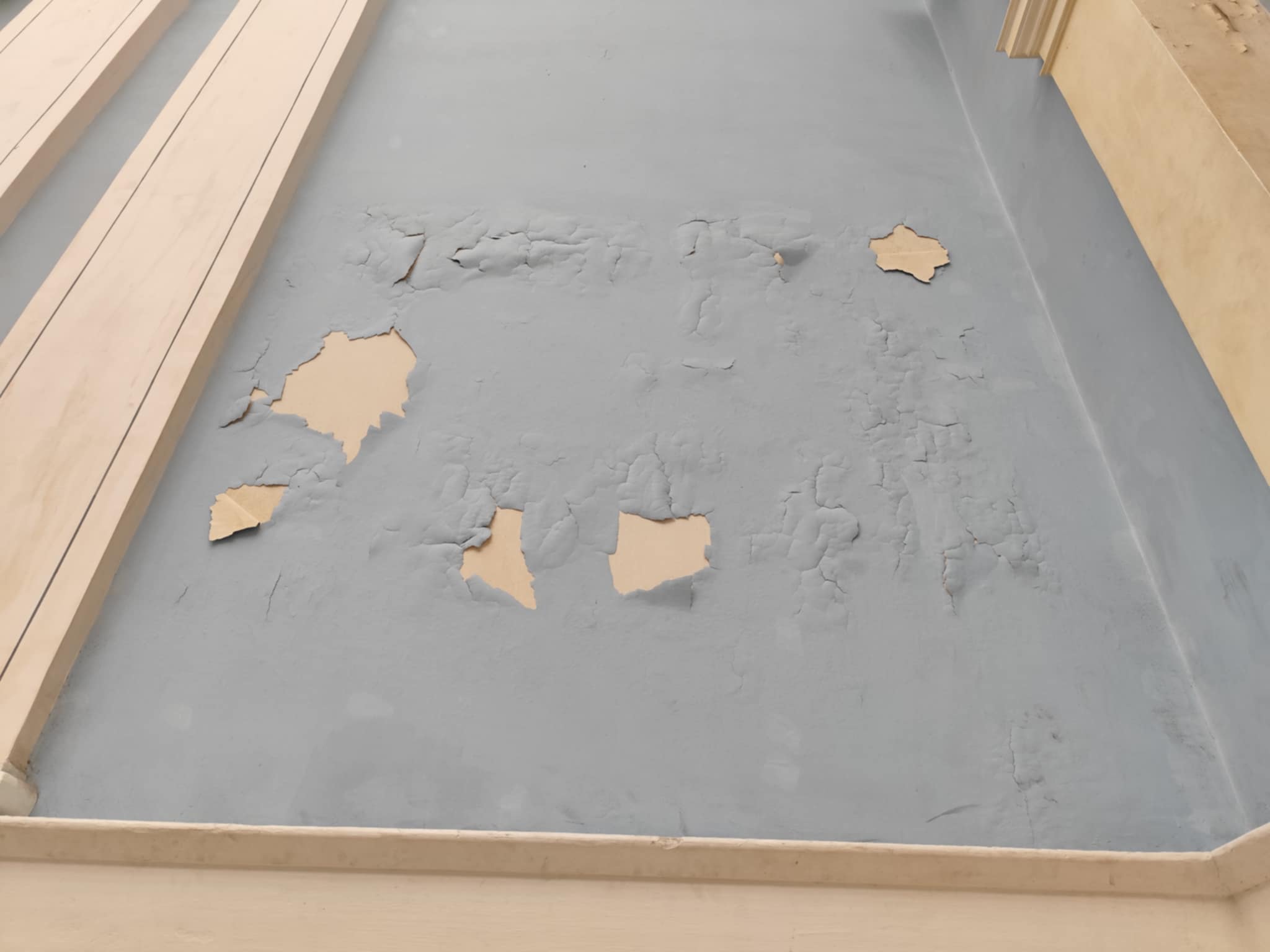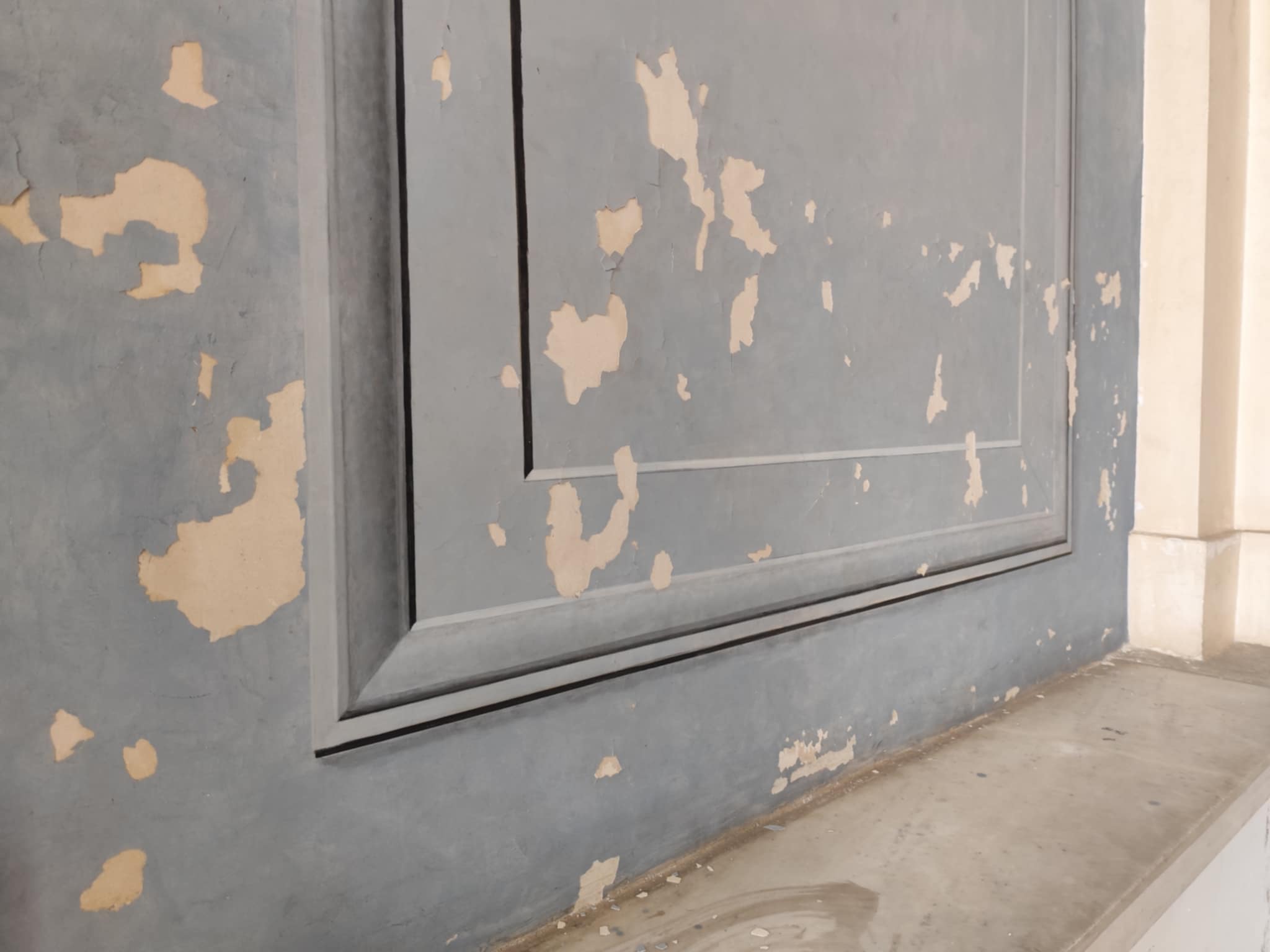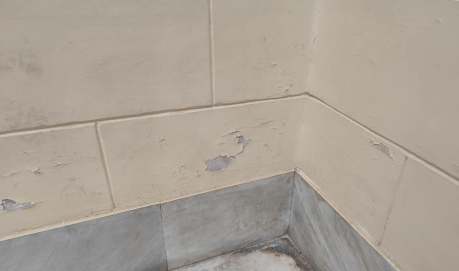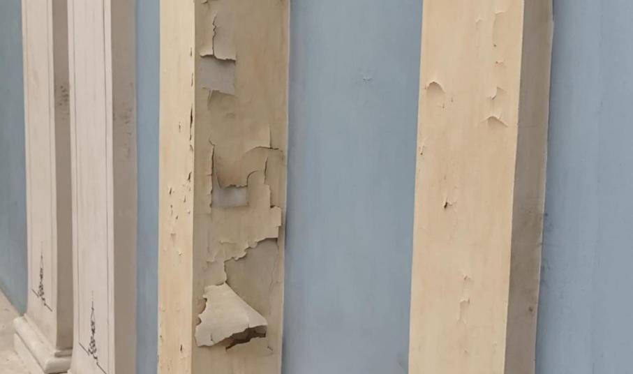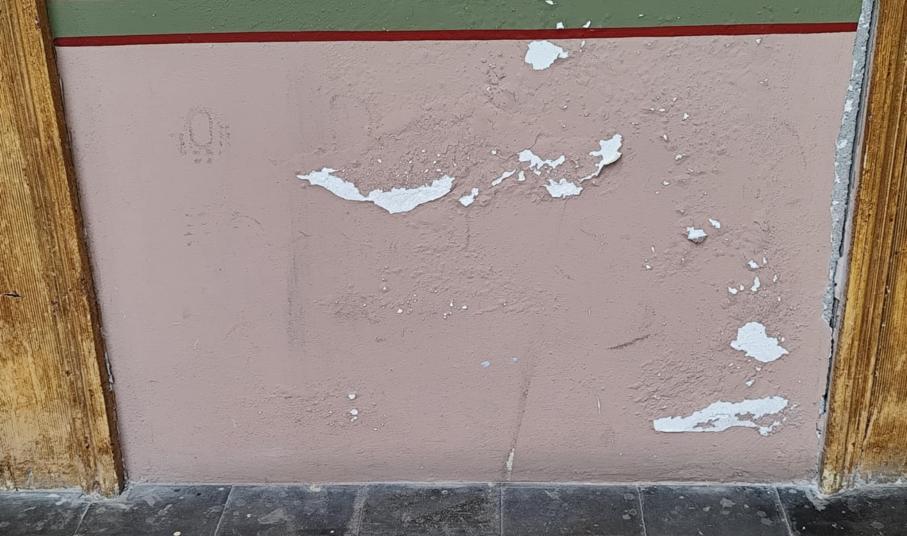 Παρομοίως, αποχρωματισμούς, αλλά και αποκολλήσεις “φύλλων” σοβάδων διαπιστώνει ο κάθε πολίτης που διέρχεται στους διαδρόμους του, με αποτέλεσμα τα σχόλια να είναι αρνητικά για την εσωτερική κατάσταση του Δημαρχείου.